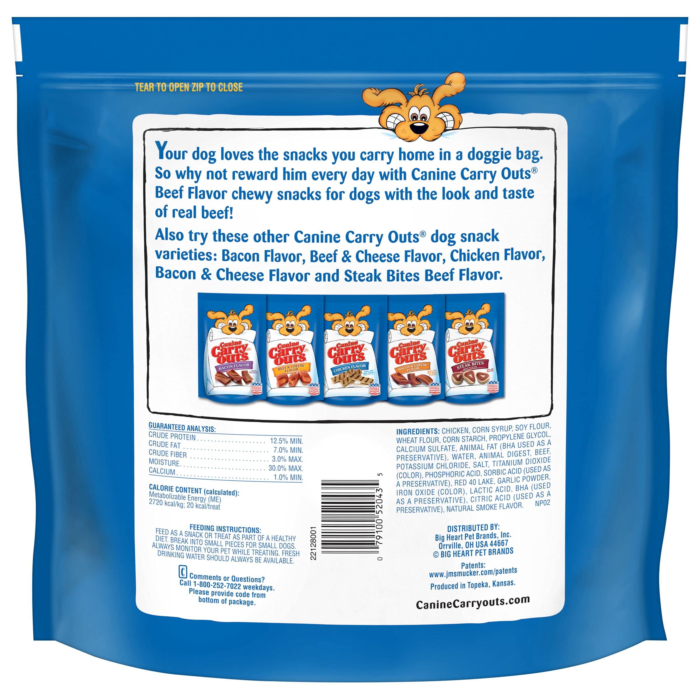 Contains four (4) 47-ounce bags of Canine Carry Outs Beef Flavor dog treats