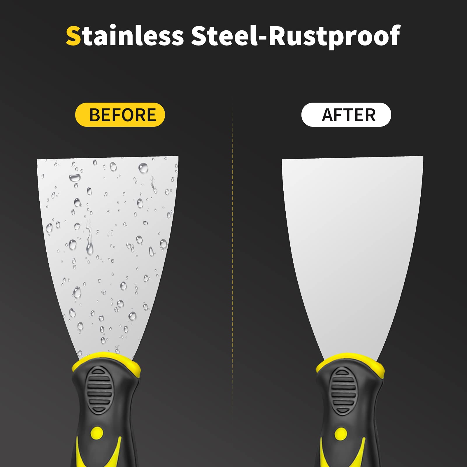 Comfortable Grip: The handle part is a perfect combination of soft rubber and plastic, and using an ergonomic design. Our putty scraper tool makes full use of the elasticity of rubber to make you hold comfortably
