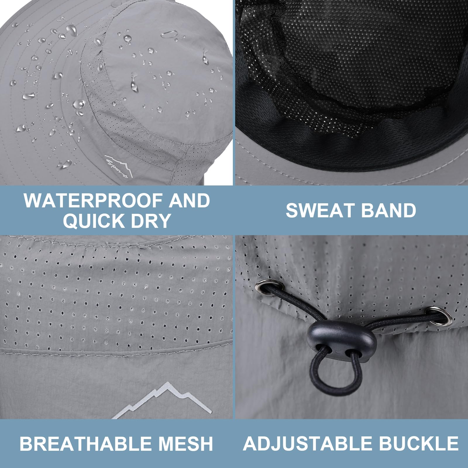 WATERPROOF&SWEAT-ABSORBENT:The stylish fishing hat is waterproof and breathable. What's more, it is also sweat absorbent for which there is a sweat band inside. Taking with our sun protection hat to do what you want, ignoring the harsh sun and the light rain.