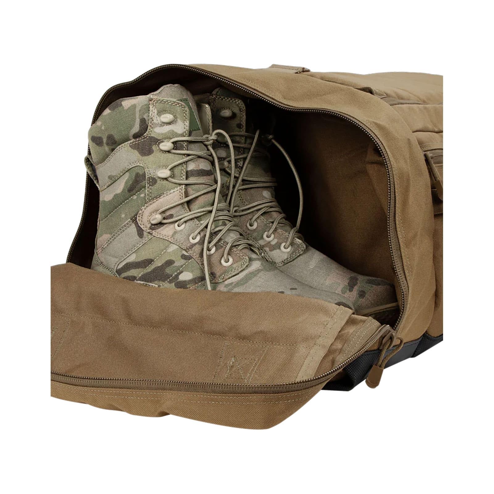 Feature Packed: Our easy access duffel bag adjusts to your load and has vast storage. Large 52L main compartment and expandable side locker for bulky gear. Store everyday items into (3) zippered sleeves and (2) internal mesh zip pockets.