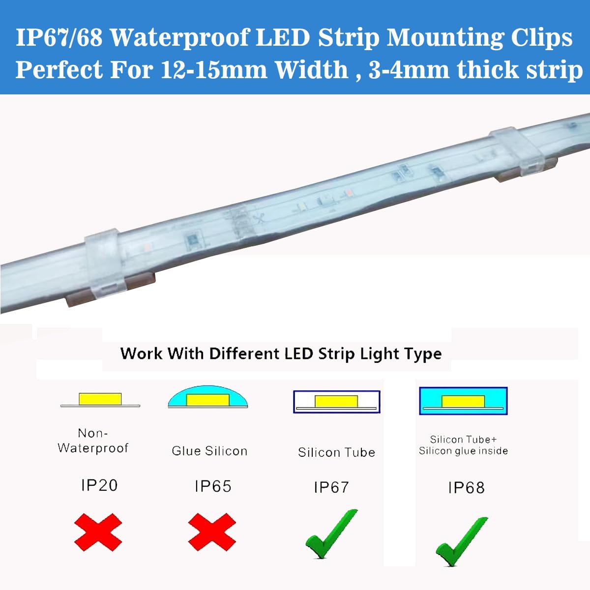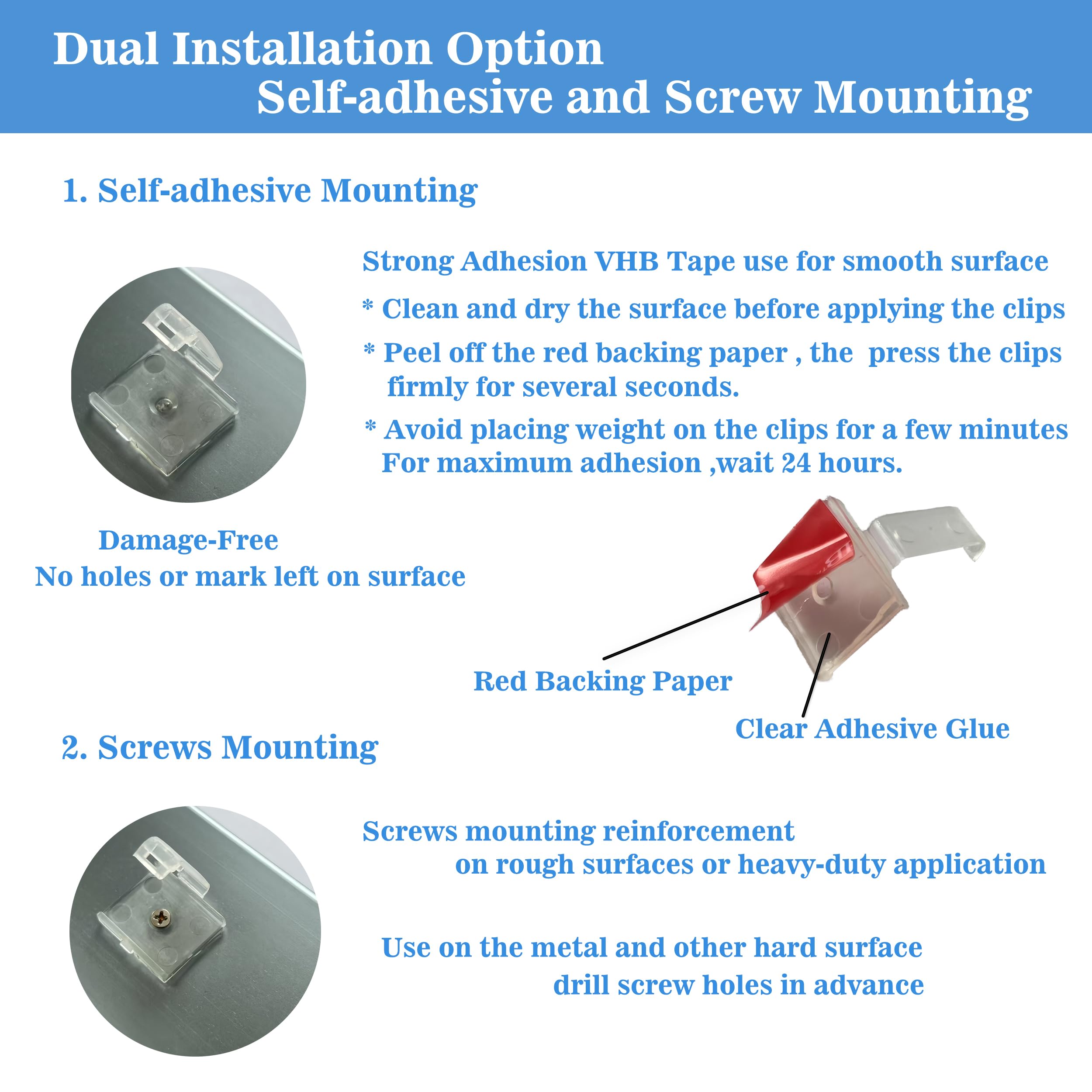 1.Dual Installation Options-Self-Adhesive & Screw Mounting: Offers damage-free hanging for Christmas lights and IP67/68 LED strips. The adhesive ensures a clean look, while screws provide additional security when needed. Suitable for both indoor and outdoor use.