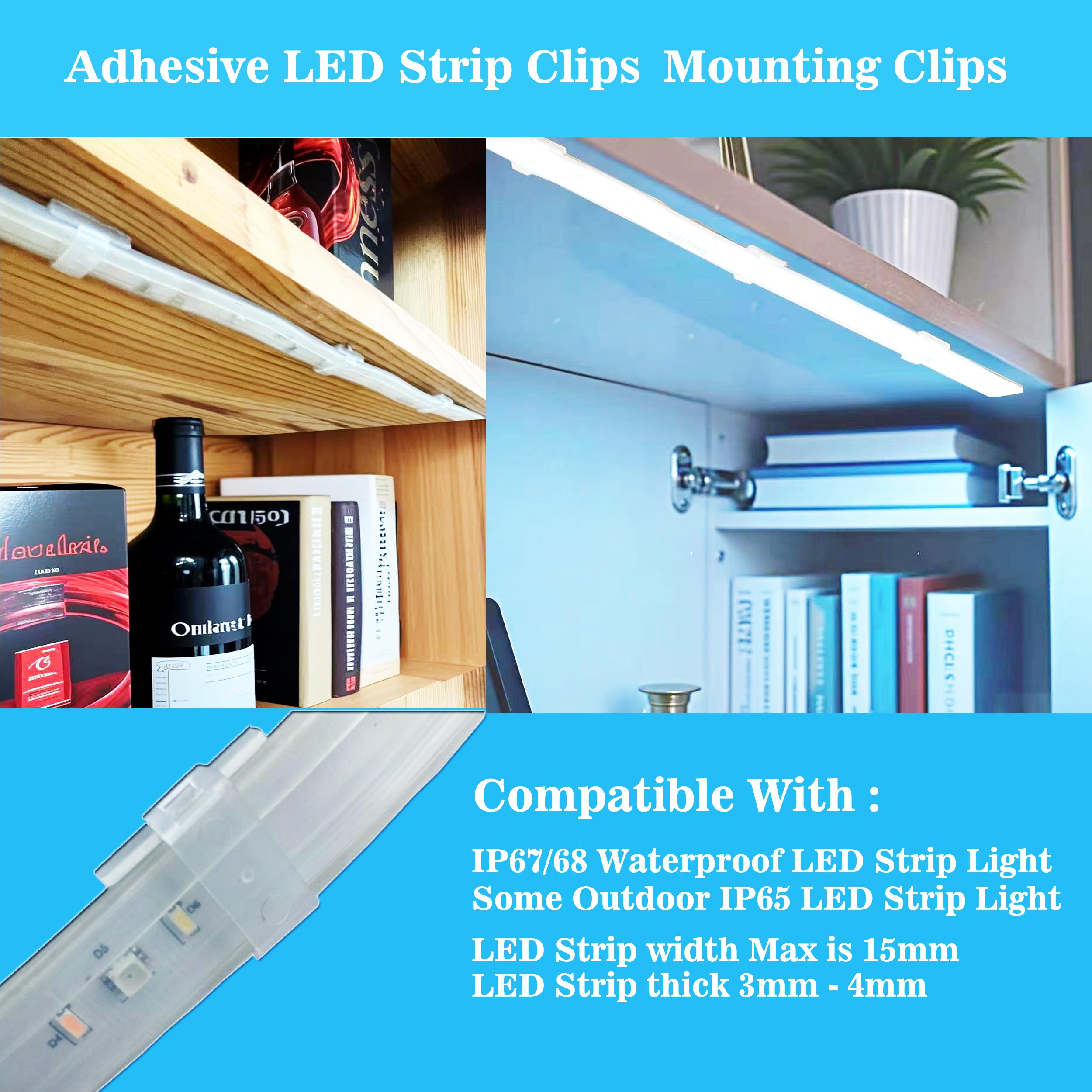 5.Package:Includes 100 self-adhesive LED strip mounting clips and 100 screws