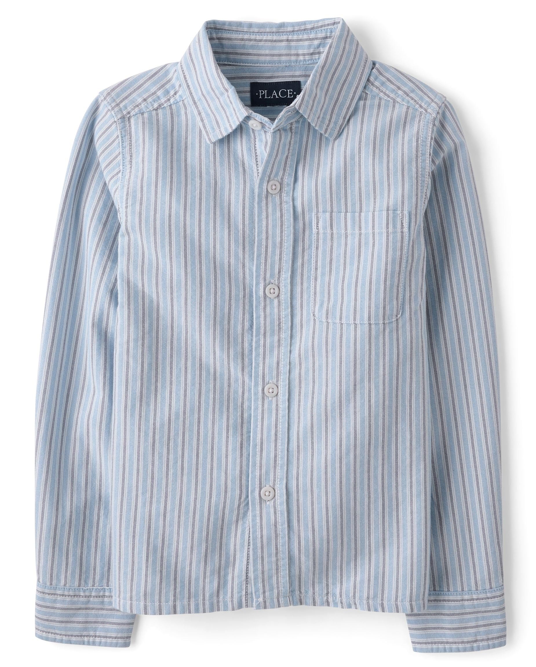 FEATURES: Button front, chest pocket, allover stripes, fabric finished for added softness & to reduce shrinkage