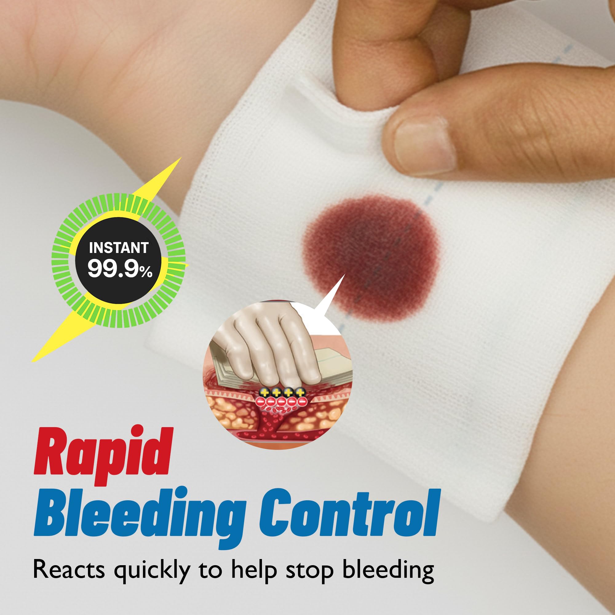 Triple-Action Power: Clots Fast, Absorbs More, Stays Safe A porous, hydrophilic structure rapidly draws in fluids to assist clotting and support moist wound care. Made with biocompatible, skin-safe materials—it's sterile and gentle during critical moments.