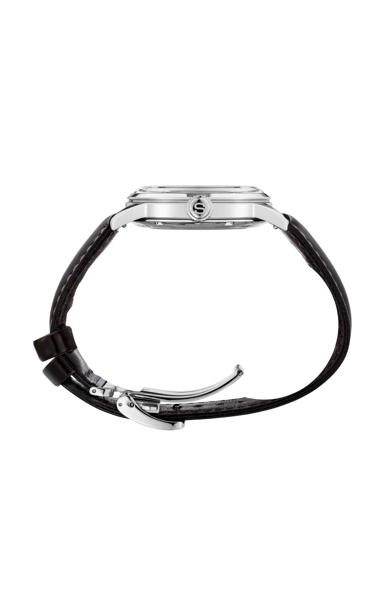 STAINLESS STEEL & LEATHER: features a durable stainless steel watch case paired with a brown leather watch band