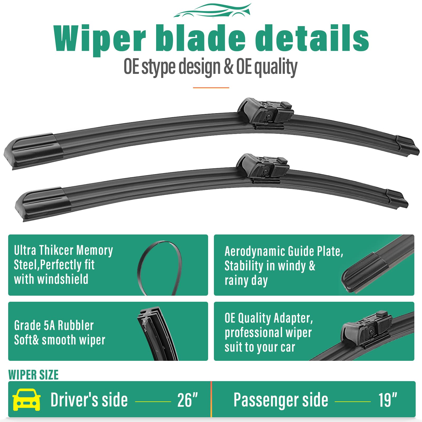 [FITMENT]: Replacement for 2022 2023 2024 2025 Infiniti QX 60 26inch + 19inch front with 12inch rear windshield wiper blades.