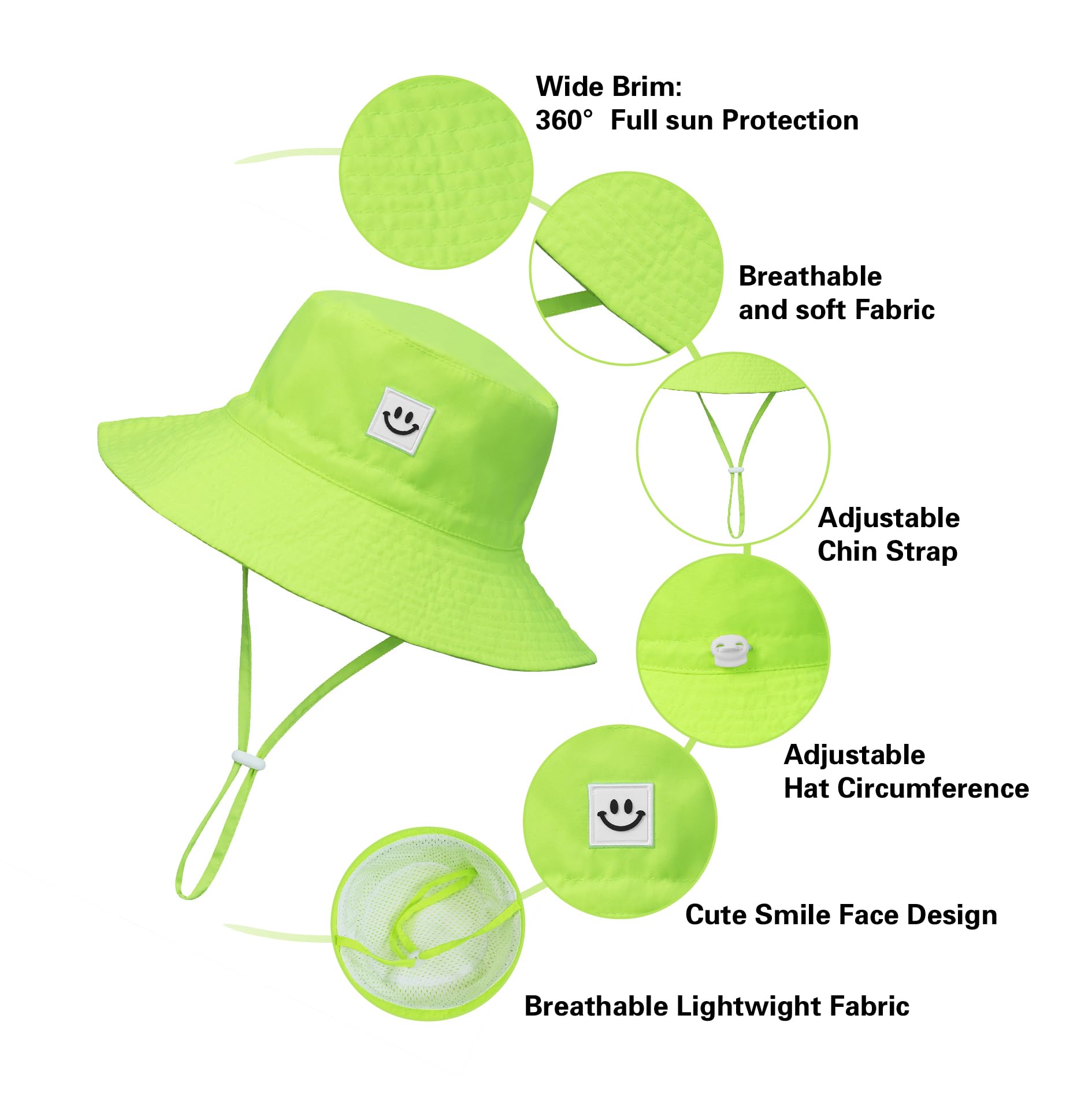 Material: The smile face baby sun hat made of high quality polyester(UPF 50+ UV sun protective fabric), quick-drying, breathable toddler sun hat keeps baby cool and comfortable