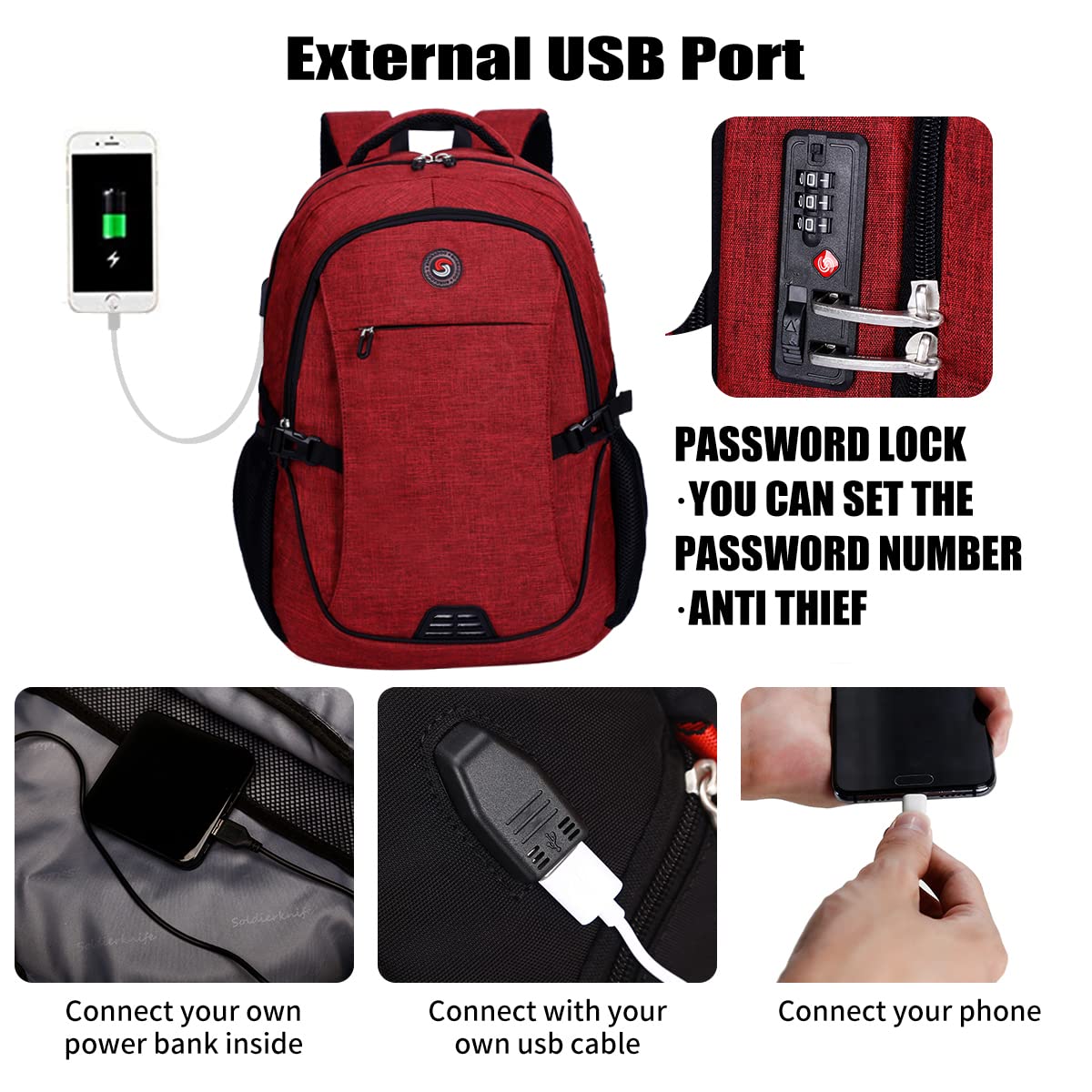 USB PORT AND PASSWORD LOCK DESIGN: Equipped with a built-in USB charger and charging cable, this USB backpack provides a more convenient way for you to charge your phone while walking. Please Note that this backpack cannot be powered by itself. The USB charging port only provides a convenient charging method, and the unique password lock design provides your stuffs with security protection