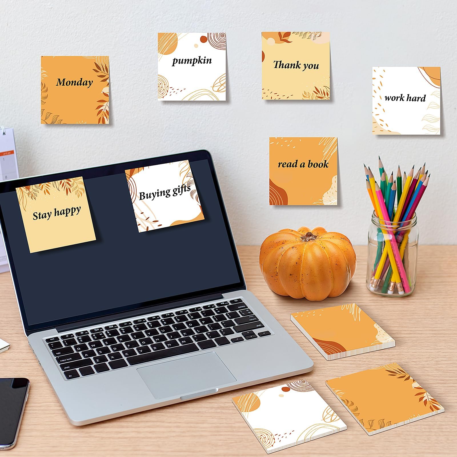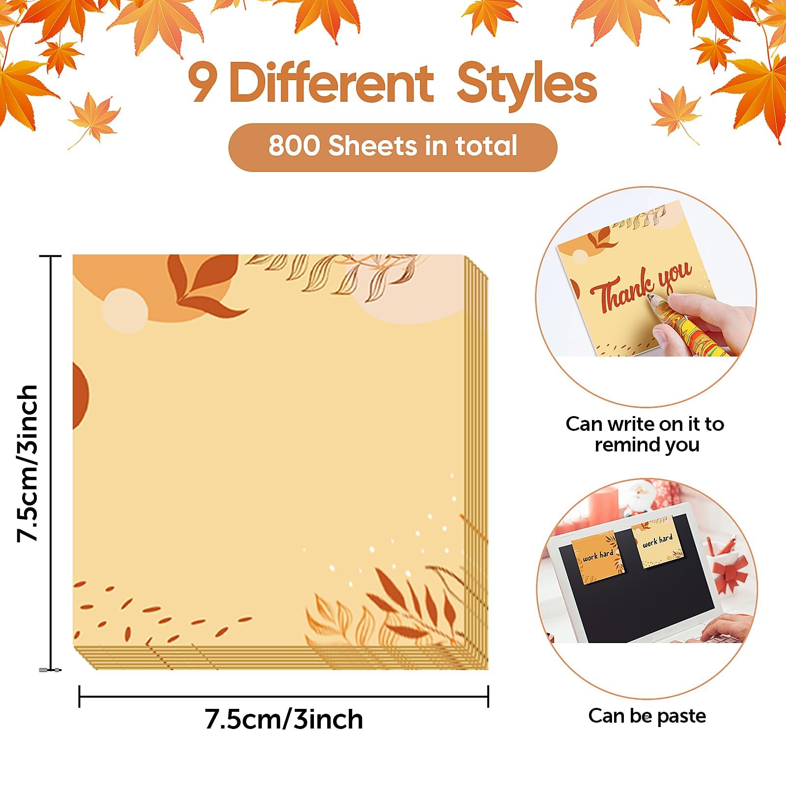 Widely Used: These fall sticky notes can be used to write notes, memos, plans, shopping lists, to-do lists, etc. to help remind you to do something important or trivial and easy to forget; you can stick them to many items with smooth and clean surfaces, such as books, laptops, computers, whiteboards, windows, walls, doors, refrigerators and so on