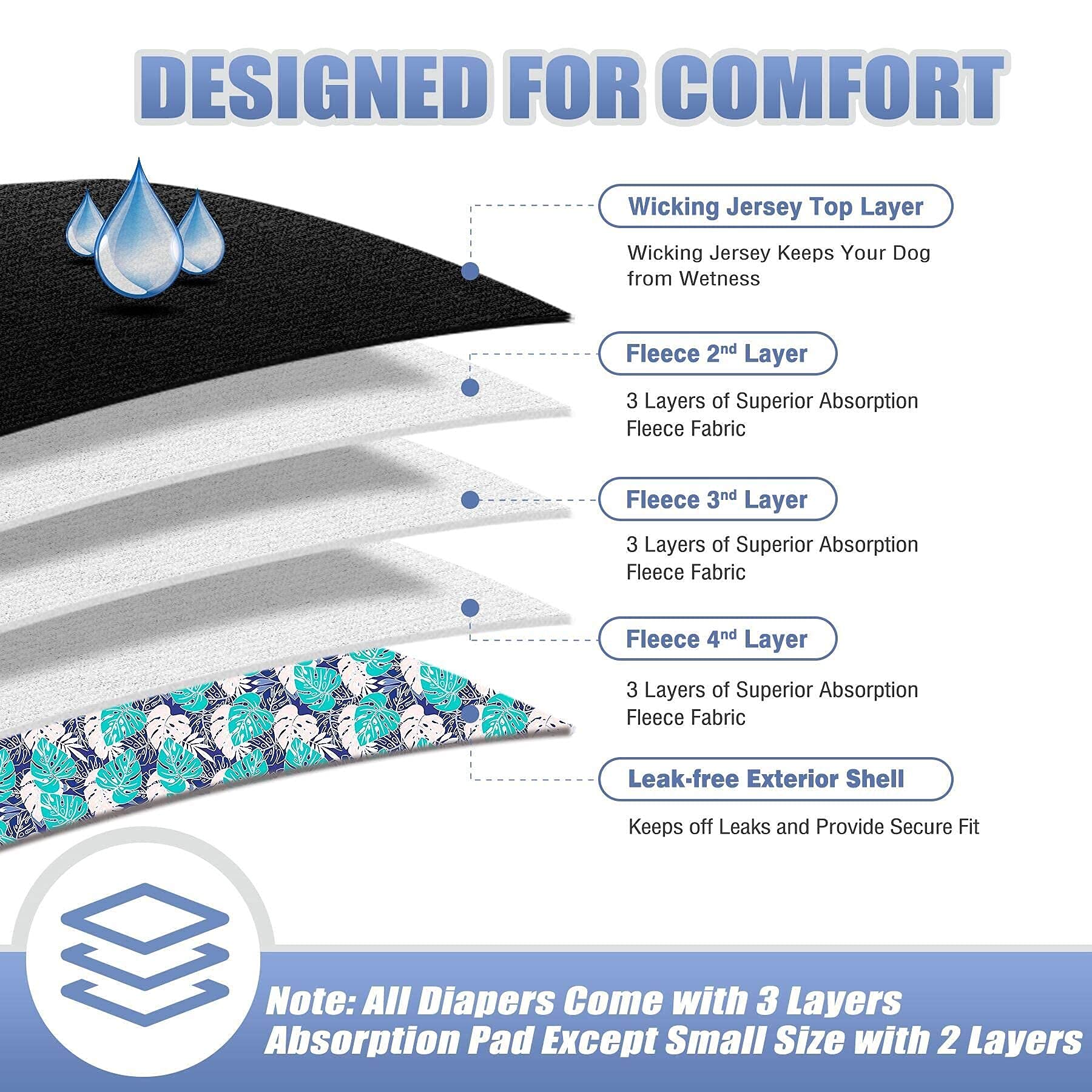 【Washable and Reusable Dog Diapers】 The reusable diapers are well made and the great thing is that you can wash them and reuse them. And since the dog diapers are made with precise stitching and quality fabrics, diapers for dogs female can stand up to frequently washing and everyday use. Our doggie diapers are more cost-effective than single-use disposable dog diapers
