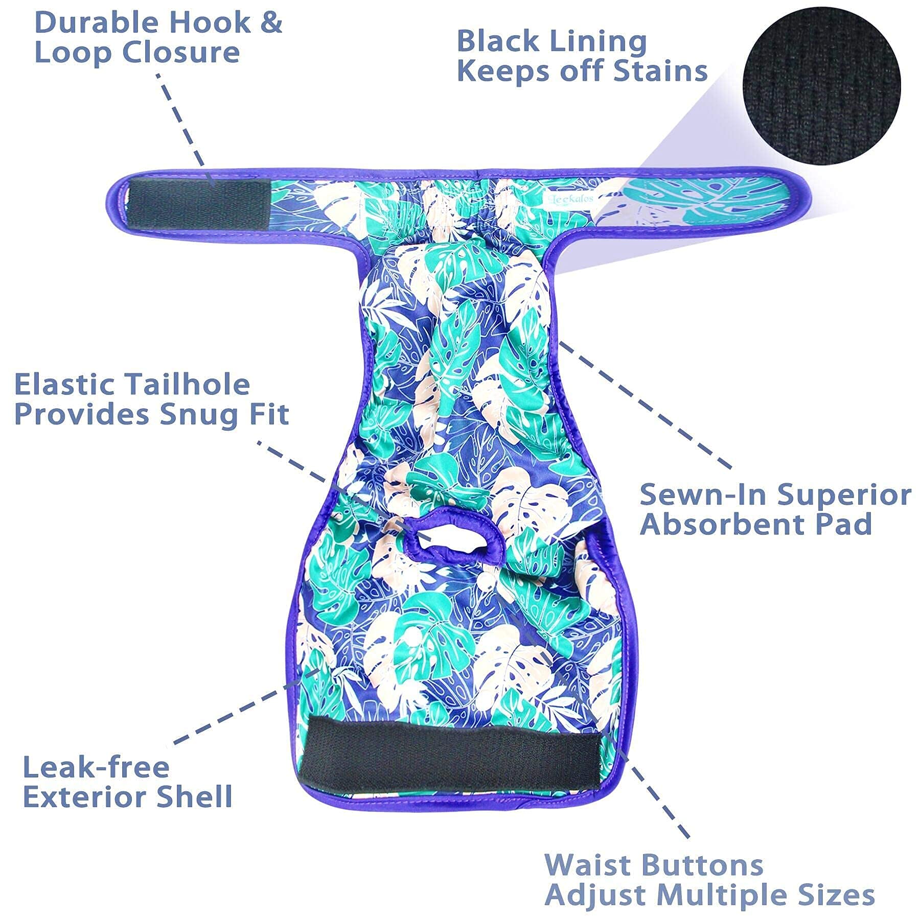 【Dog Diaper Size】Leekalos reusable dog diapers have five size to fit different dog’s breed. They are in three colors and delivered in pack of three. Dogs’ waist and the back legs should be measured carefully before you purchase so that the reusable dog diapers are better fit your dog. These washable dog diapers female are recommended for senior pets, dog incontinence, special needs pets and overnight
