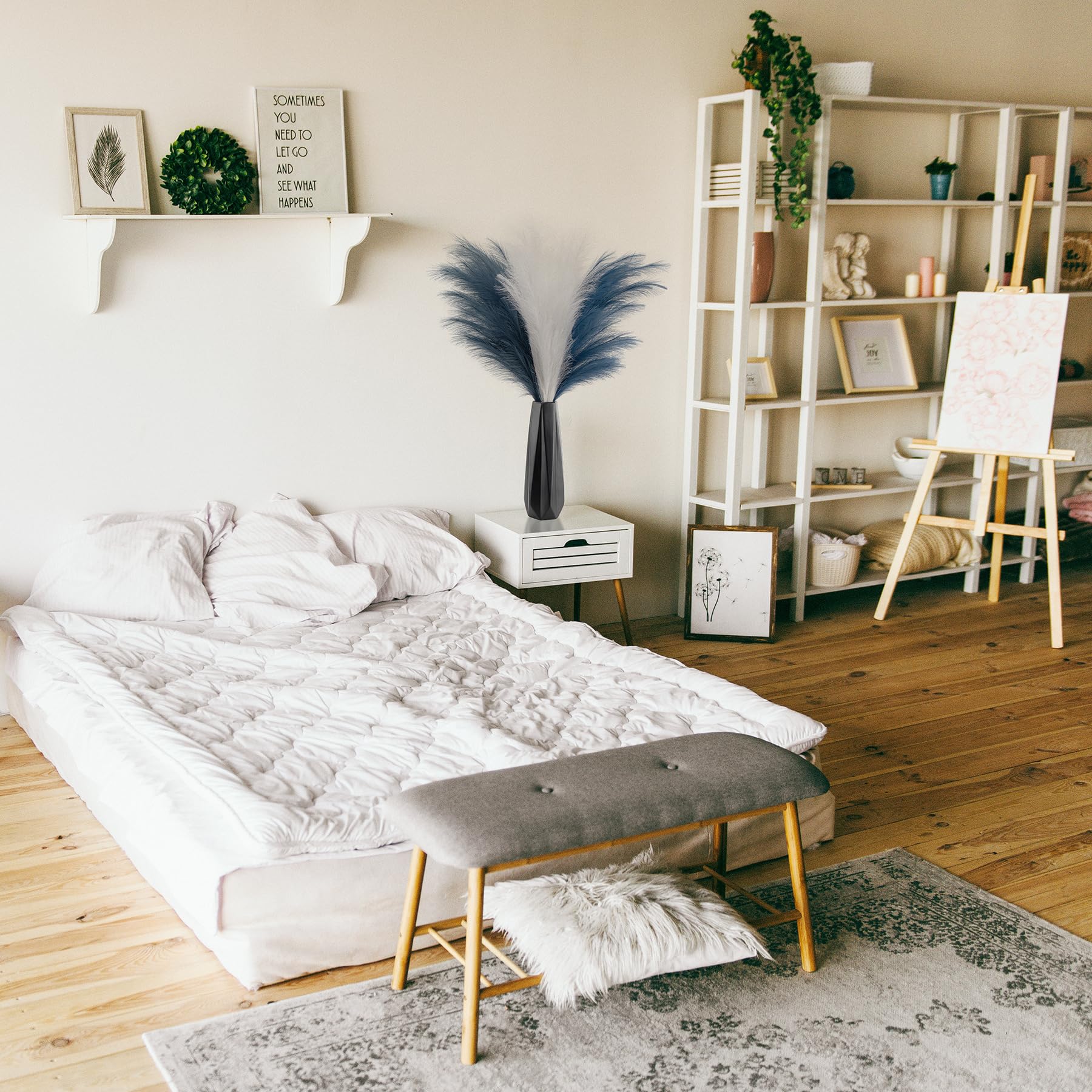 Minimalistic&Elegant Pampas Grass Decor: Really nice faux pampas grass for home decor, display in your hallway, kitchen, living room, bedroom, front room, dining room, or entryway... any space. Pampas grass are also a great addition to weddings, flower arrangements, lifestyle photography, party, bohemian decorating and etc
