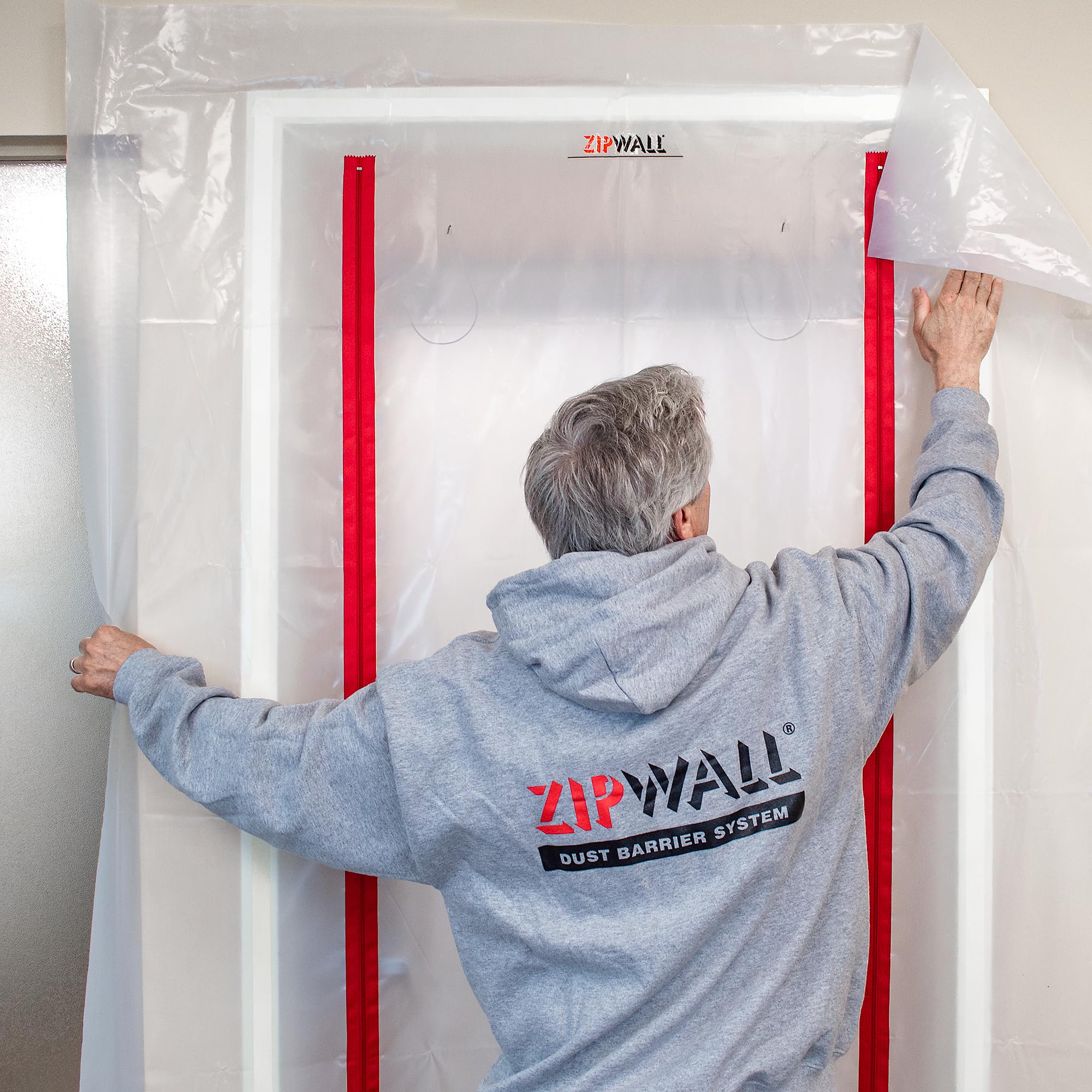 Product Description ZipWall created the dust barrier category in 1997 with a wide range of innovative products, just like the ZipDoor kit. This zipper door is a quick way to seal a doorway while providing easy access, and without damaging the doorframe. The double-sided tape firmly holds up the plastic panel while remaining gentle on the doorframe. The plastic door panel comes with pre-installed zippers and can easily seal off a standard commercial doorway. A ZipWall barrier can be set up by one person in minutes without tape, ladders or damage. The complete ZipWall Dust Barrier System includes spring-loaded poles to set up a barrier up to 20 feet high and accessories to create entries in the barrier, form tight seals at the ceiling, walls, and floor, easily seal off doors and doorways, and provide comprehensive solutions for containing airborne dust. It is ideal for professional contractors working in residential and commercial remodeling, renovation, and restoration. From the Manufacturer The ZipWall Dust Barrier System can be set up by one person in minutes without tape, ladders or damage. Build a barrier up to 20’ high and as wide as needed using plastic sheeting or ZipFast Reusable Barrier Panels. Our complete system includes accessories to create doorways in the barrier, form tight seals at the ceiling, walls, and floor and to easily seal off doorways, larger openings, and fixtures. The ZipWall Dust Barrier System is ideal for residential and commercial contractors doing remodeling, drywall work, painting, concrete work, lead abatement, mold remediation, and more.