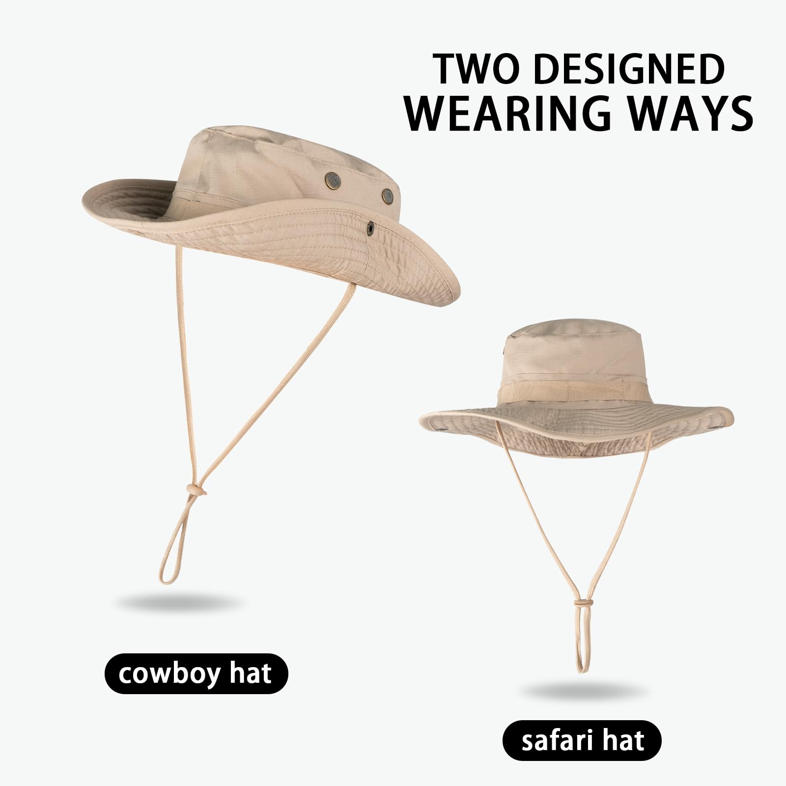 TWO DESIGNED WEARING WAYS - Our unisex bucket hat has two ways to use it. Both sides are designed with rust-proof Pop-In buttons for easy conversion to Sheriff / Cowboy style. When the brim is buttoned up, it's a cowboy hat. Loosen it, which will be a fashionable sun-proof safari hat/fisherman hat for men and women.