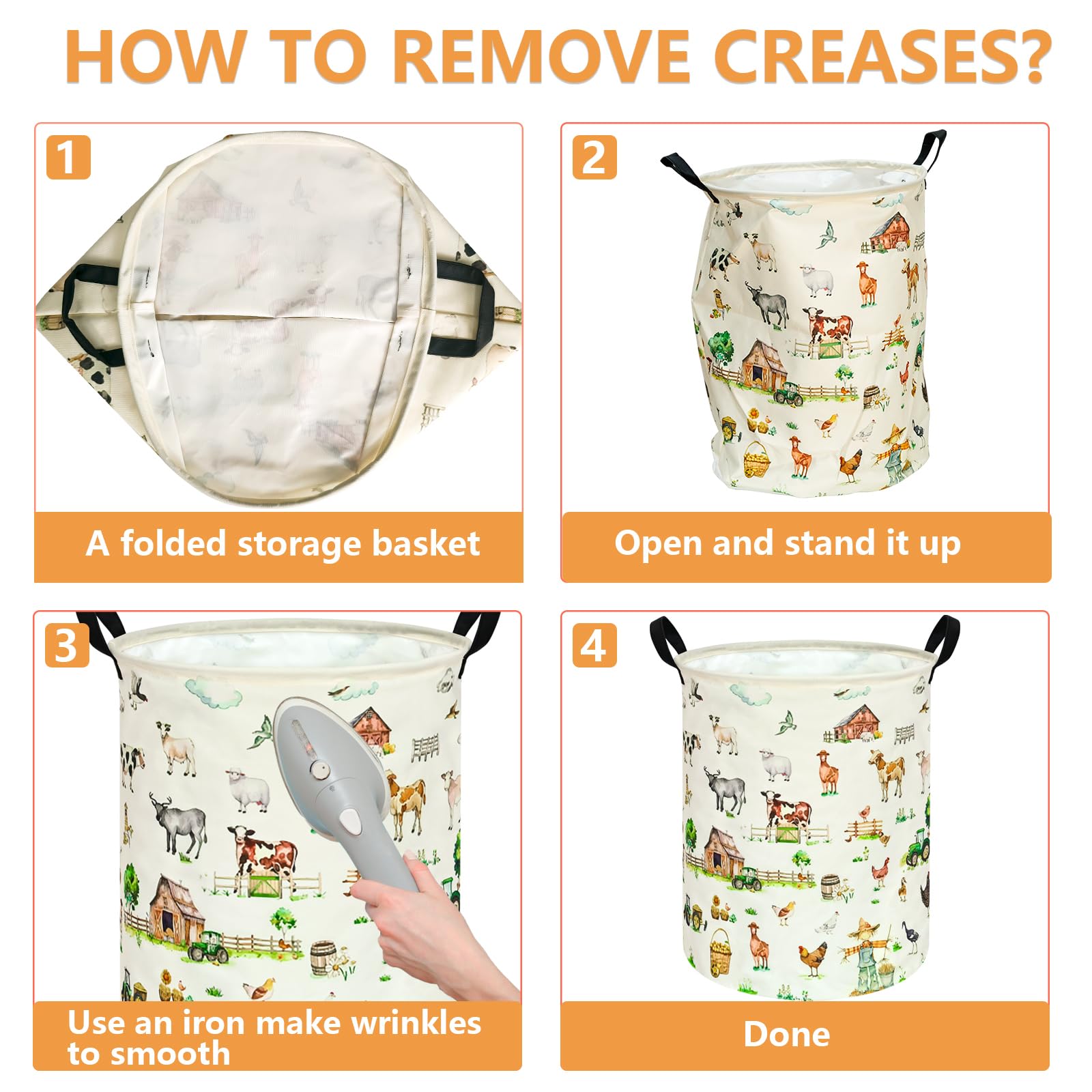NOTE: The laundry hamper comes with compression packing which may result in crumpled in long-distance transit. It will recover after a period of time and also can be smoothed out by steam iron and hairdryer.