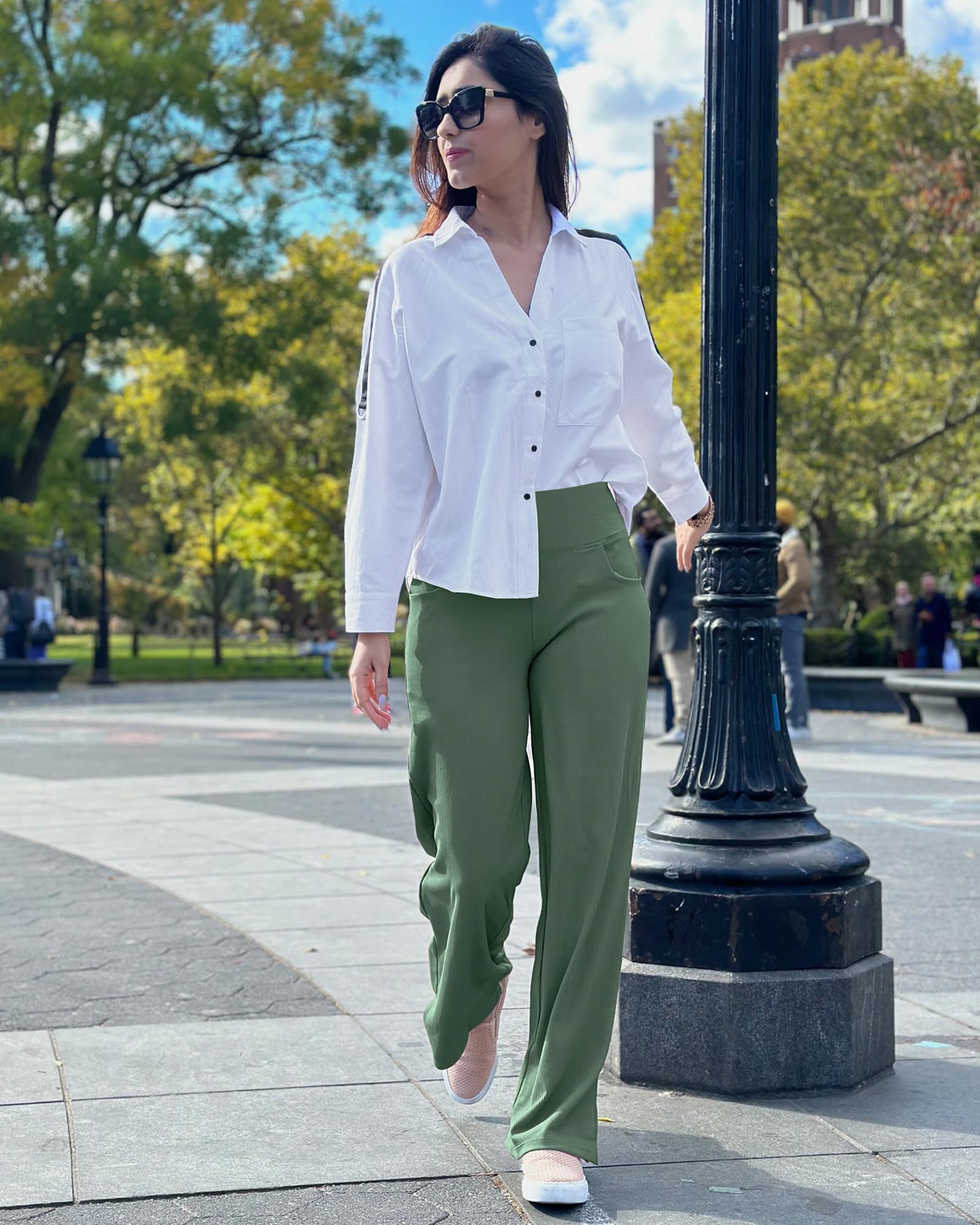 ➤ Wide leg pants with a high waist design and streamlined hips cutting, contour your curves and provide a secure fit