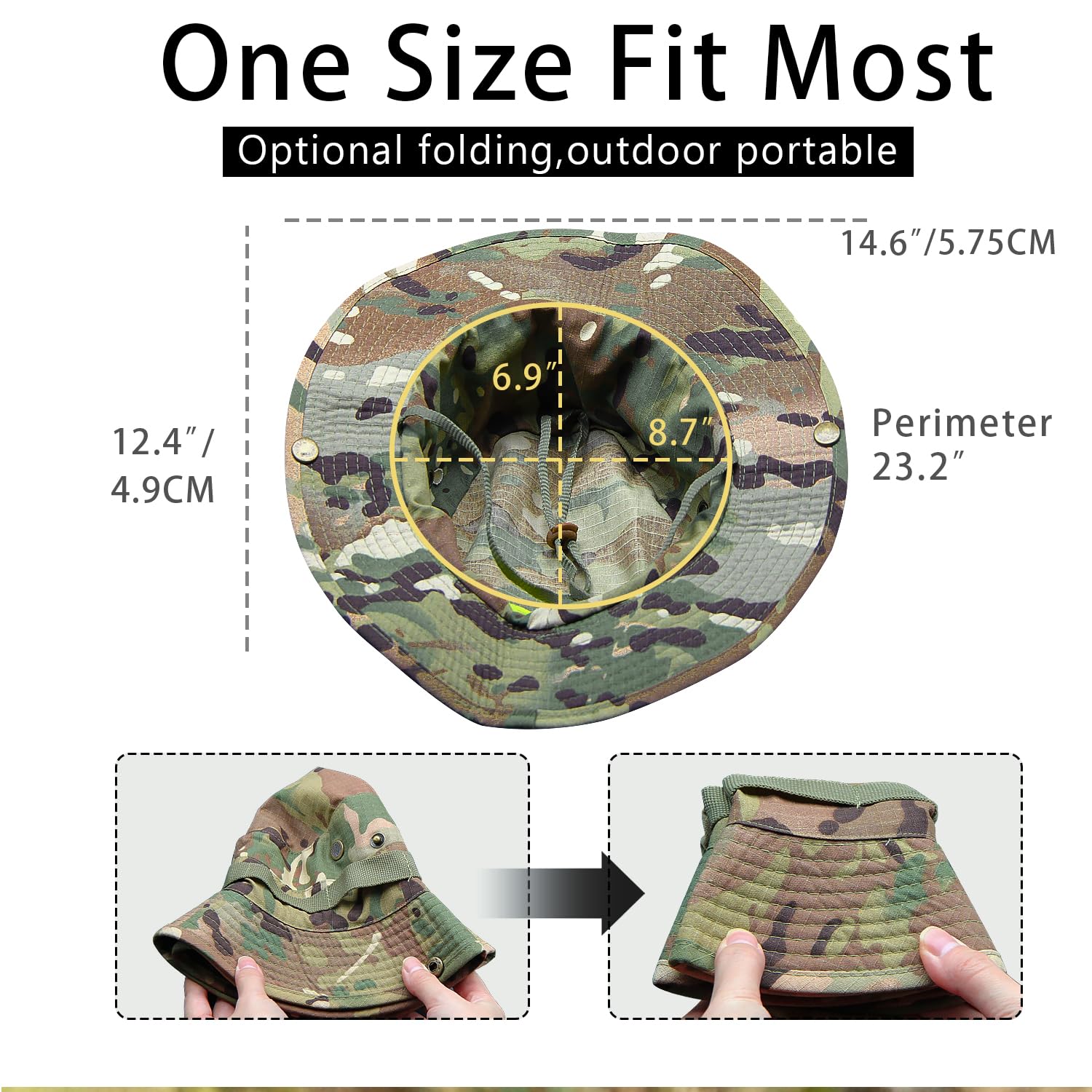 ✅【COMFORABLE & BREATHABLE 】65% cotton, 35% polyester fiber, comfortable and breathable lining material. The unique oversized brim design protects you from the sun and hourglass. The wide sides and shielded side vents are designed to keep you cool in the scorching sun and battle games.The mesh hole panels design allows for moisture and heat to easily escape these hats. Built in sweatband removes sweat from eyes and face.The bucket hat can be folded in half, easily carried inside your bags.