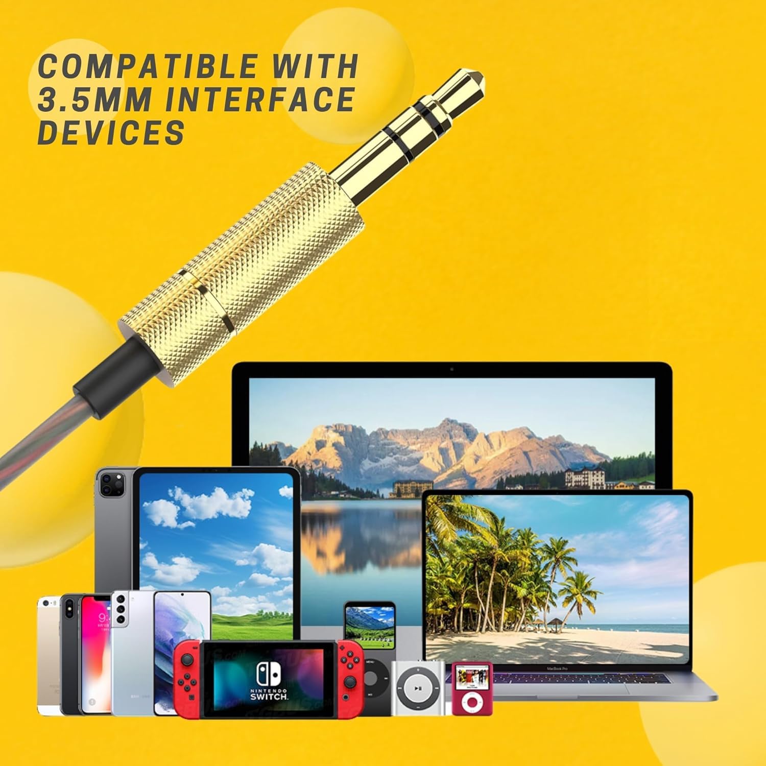Universal 3.5mm Compatibility; Easily connect to your iPhone; Samsung Galaxy; Android smartphone; laptop; tablet; PC; MP3 player and any other device with a standard headphone jack