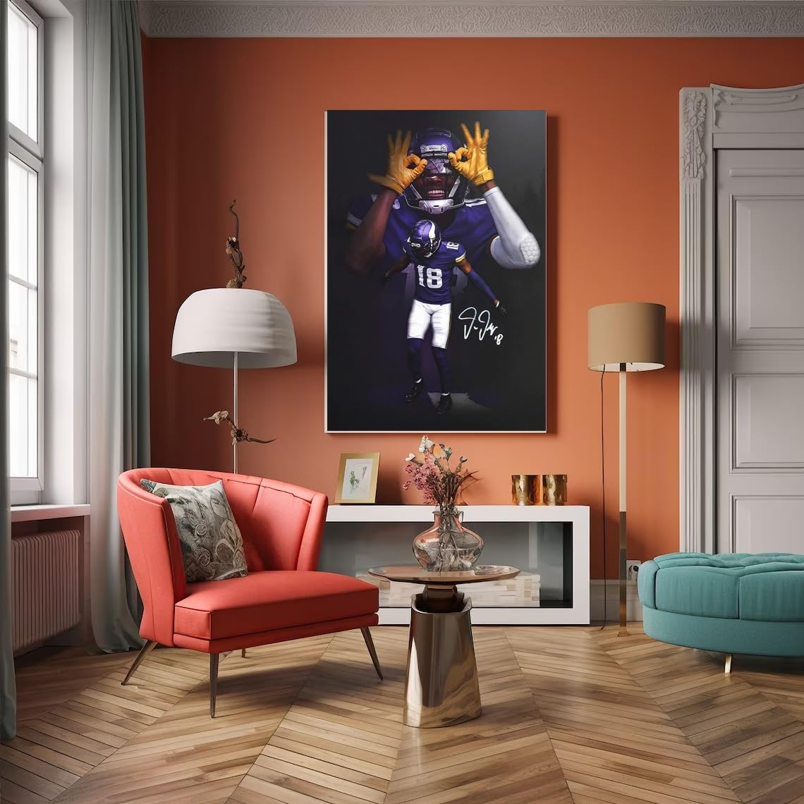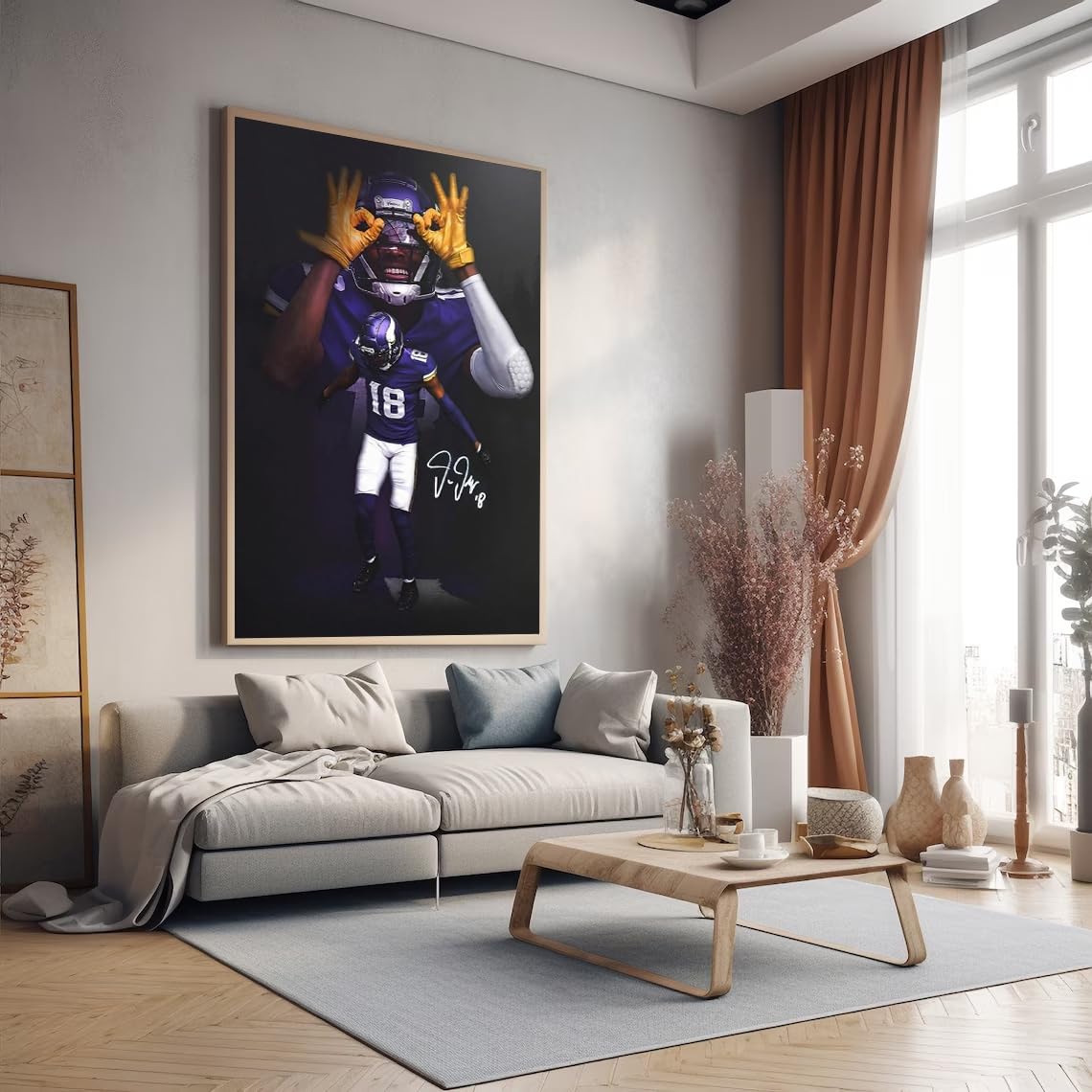 [ Justin Jefferson Rugby Star Wall art] Vikings American Football Poster Canvas Framed A Perfect Gift For Your Relatives And Friends On Birthday,Wedding Day,Anniversary,Man Gift, Dad Gift,Father Day,Festival Etc.A Perfect Choice For Wall Decoration And Home Decorations.