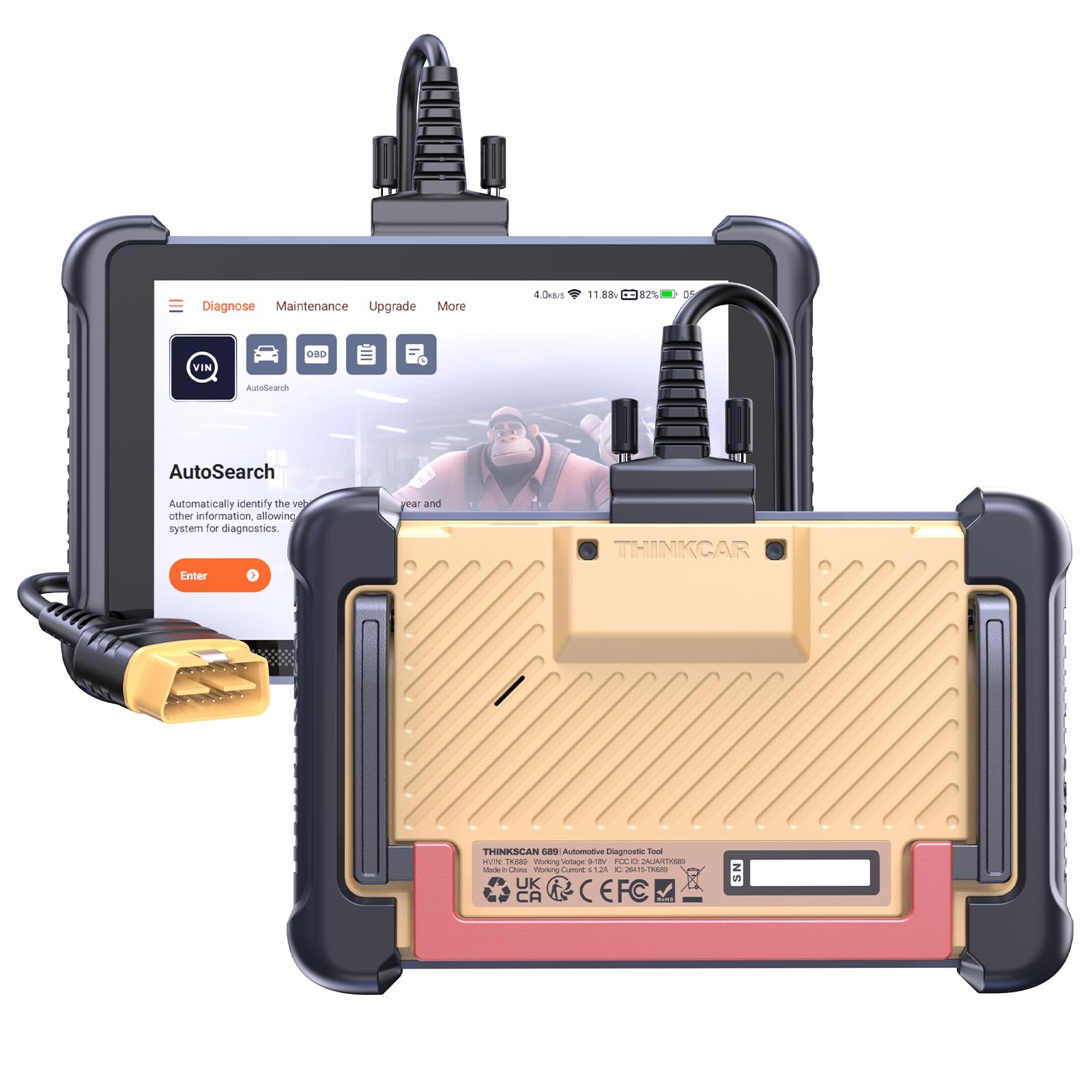【Warm Tips】Wired THINKSCAN 689 is connected through a detachable OBDII cable, and we also have added OBD2 Extension Cable (about 60 cm/2 feet) as g ift, enabling customers handling vehicle repairs with ease. Just click "Bundles Item" above to get it.