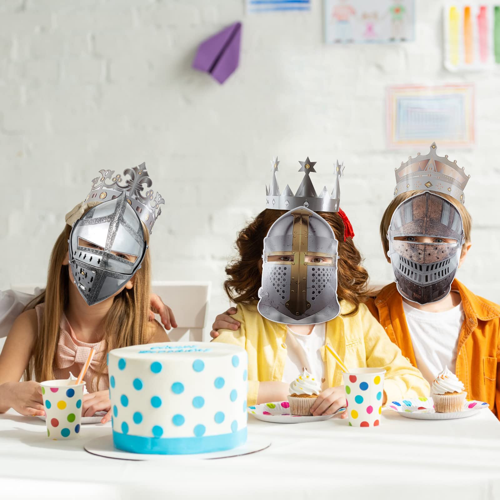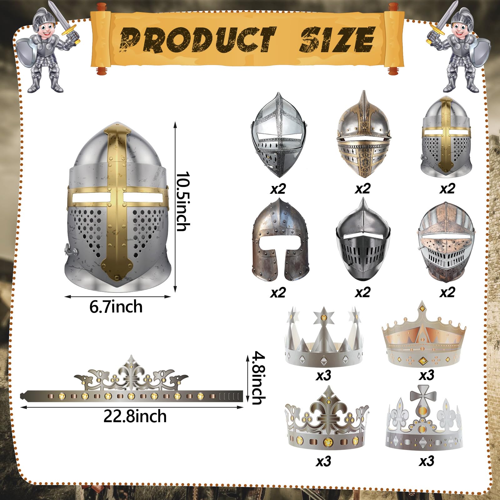 Safe and Reliable: our knight soldier masks and crowns are made of quality paper materials, lightweight but strong enough not to break or fray easily, clear patterns and colors, no fade, and can accompany you for a long time