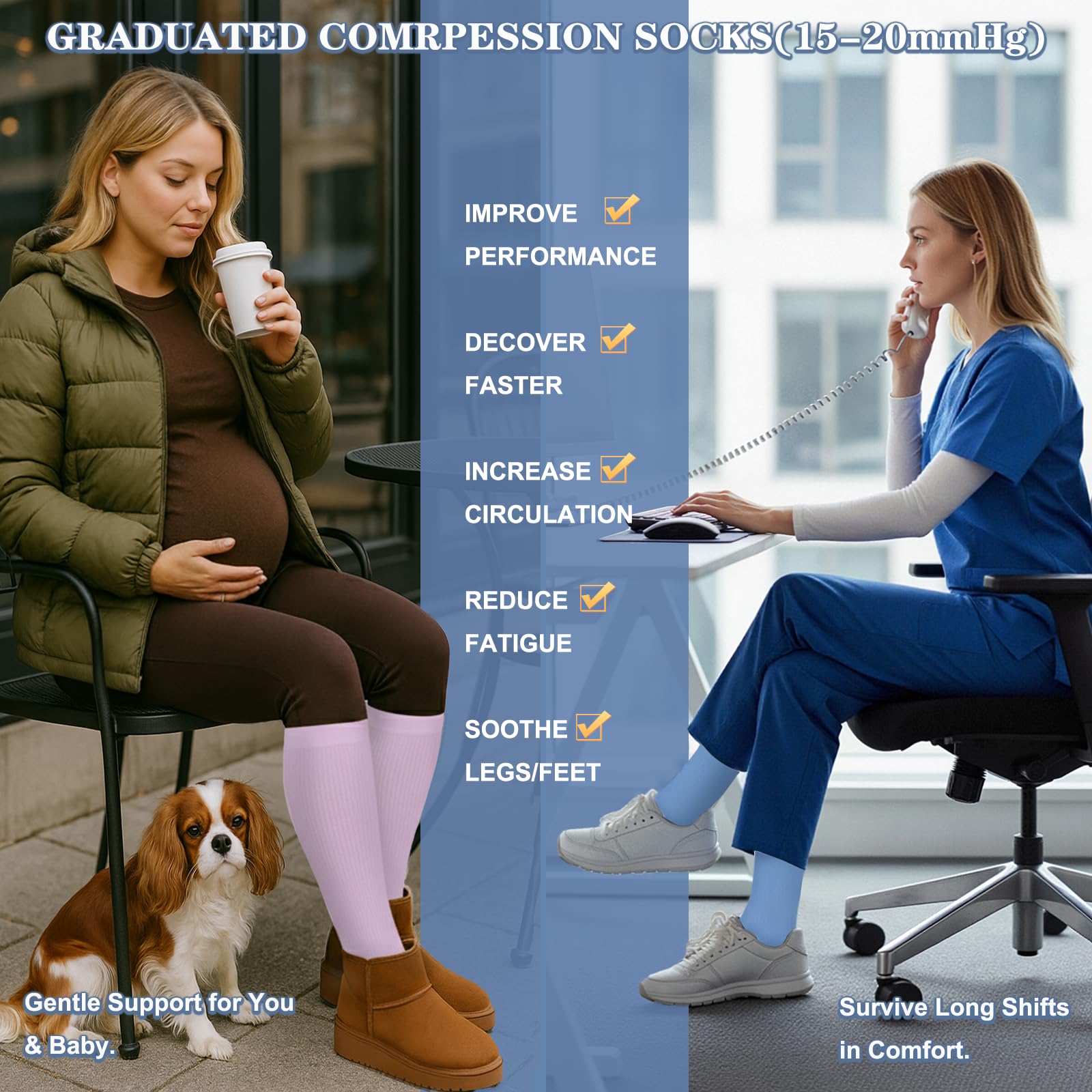 Comfortable Design - Sooverki graduated compression socks for women and men circulation provide 15-20 mmHg of gradient compression, which are ergonomically designed. Prevention and relief of minor varicose veins, relief of tired aching legs, relief of minor swelling of feet and legs. The inner design of the socks is very soft and friendly to the toes. The material is breathable and comfortable, which can keep your feet dry.