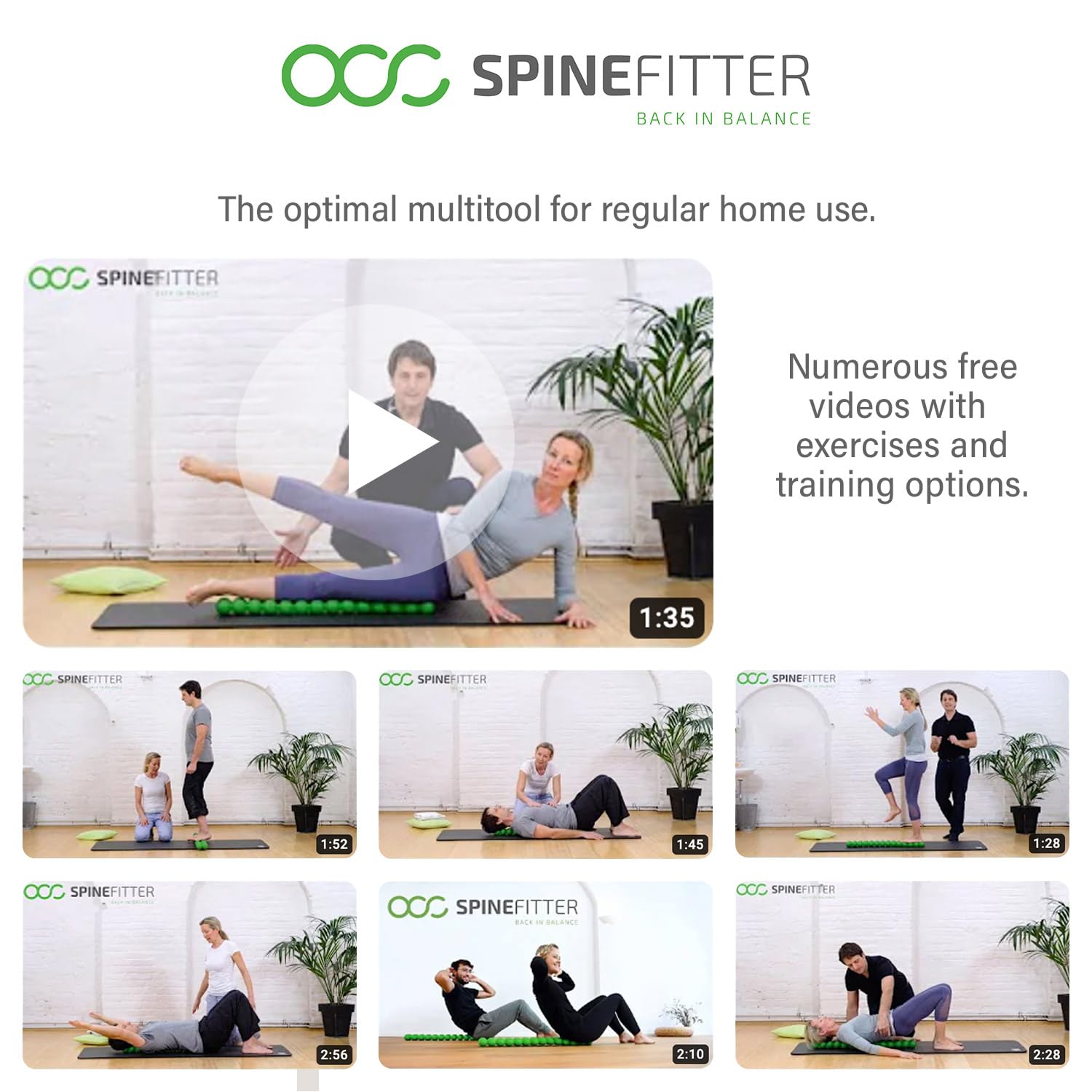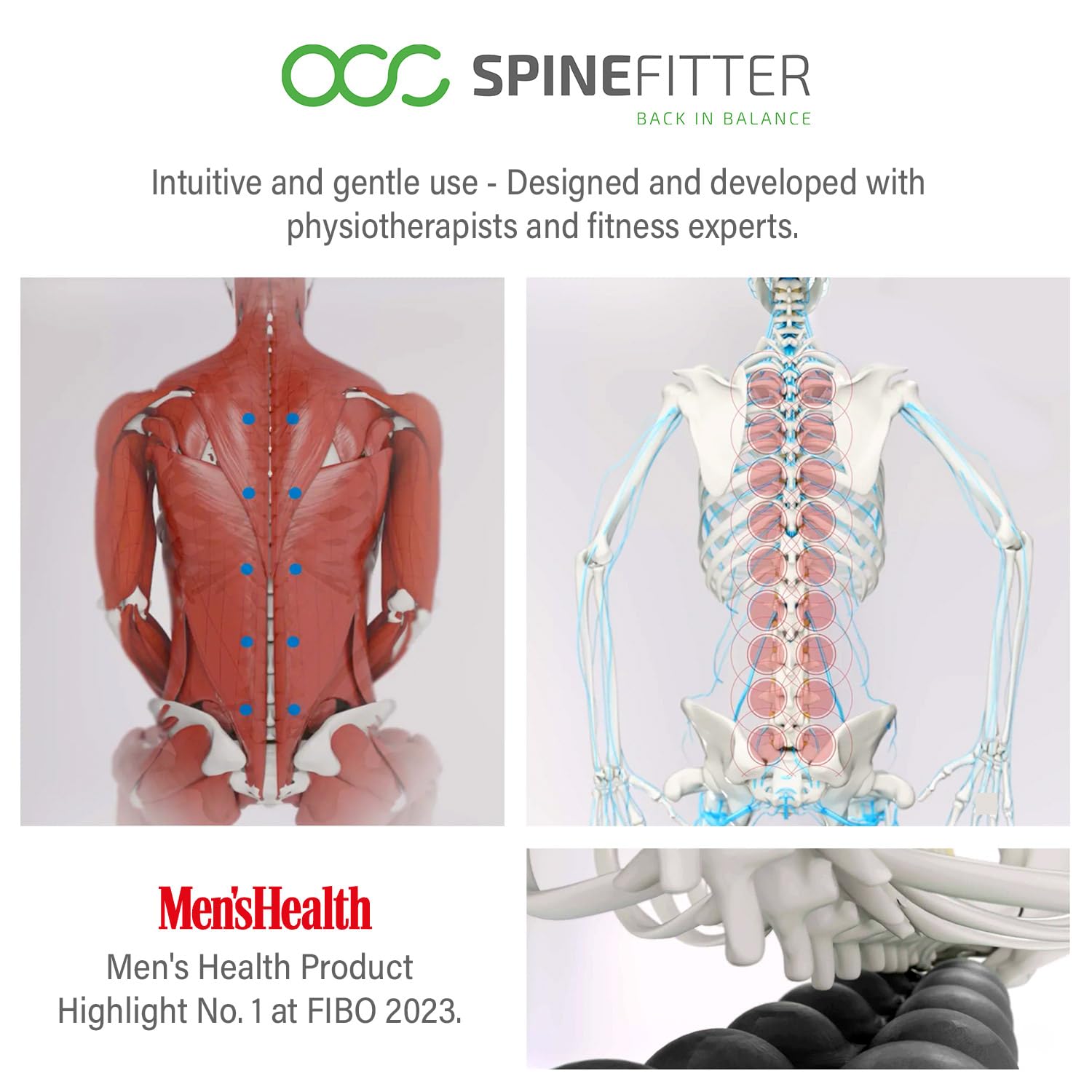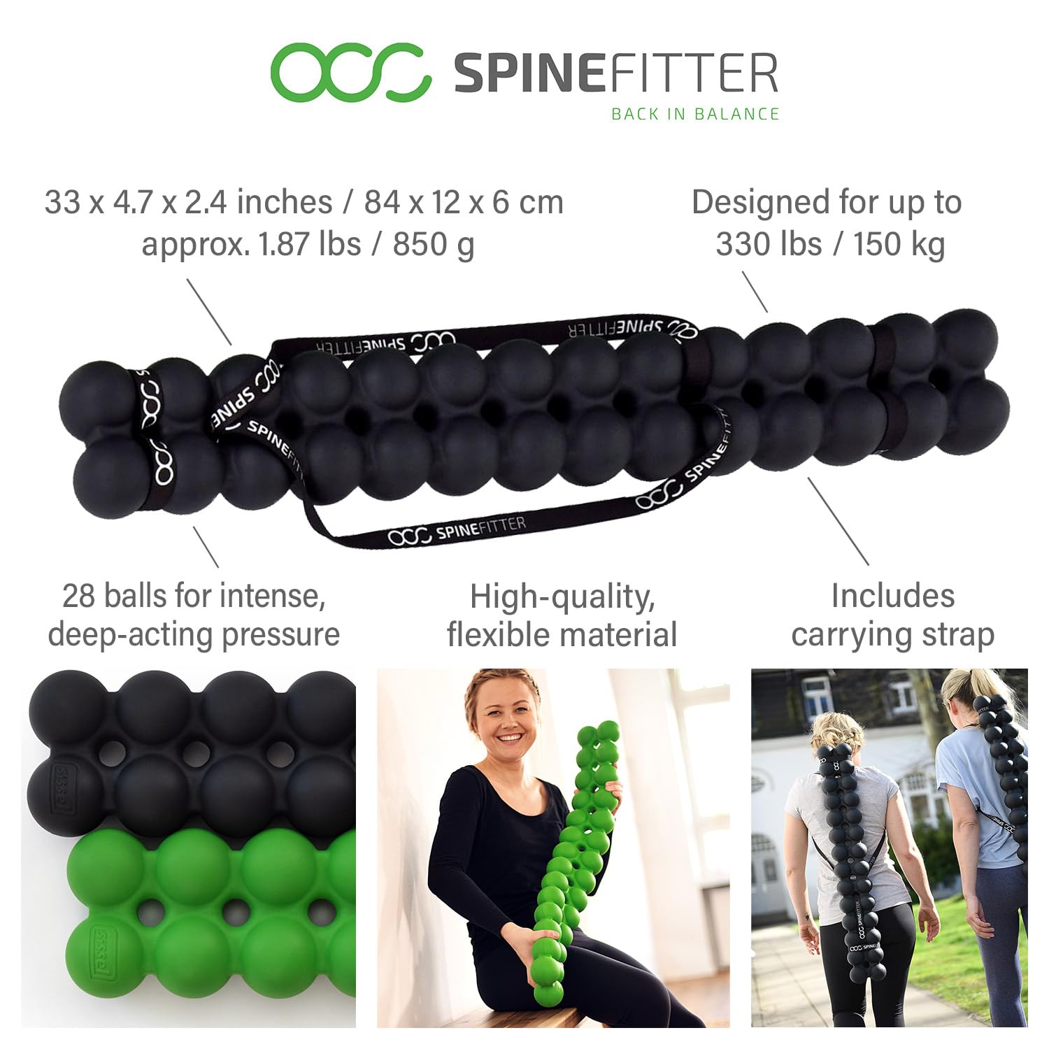 SPINEFITTER BY SISSEL: The innovative multitool for your back health. The 28 interconnected massage balls relieve muscle tension, mobilize joints, and reduce blockages.