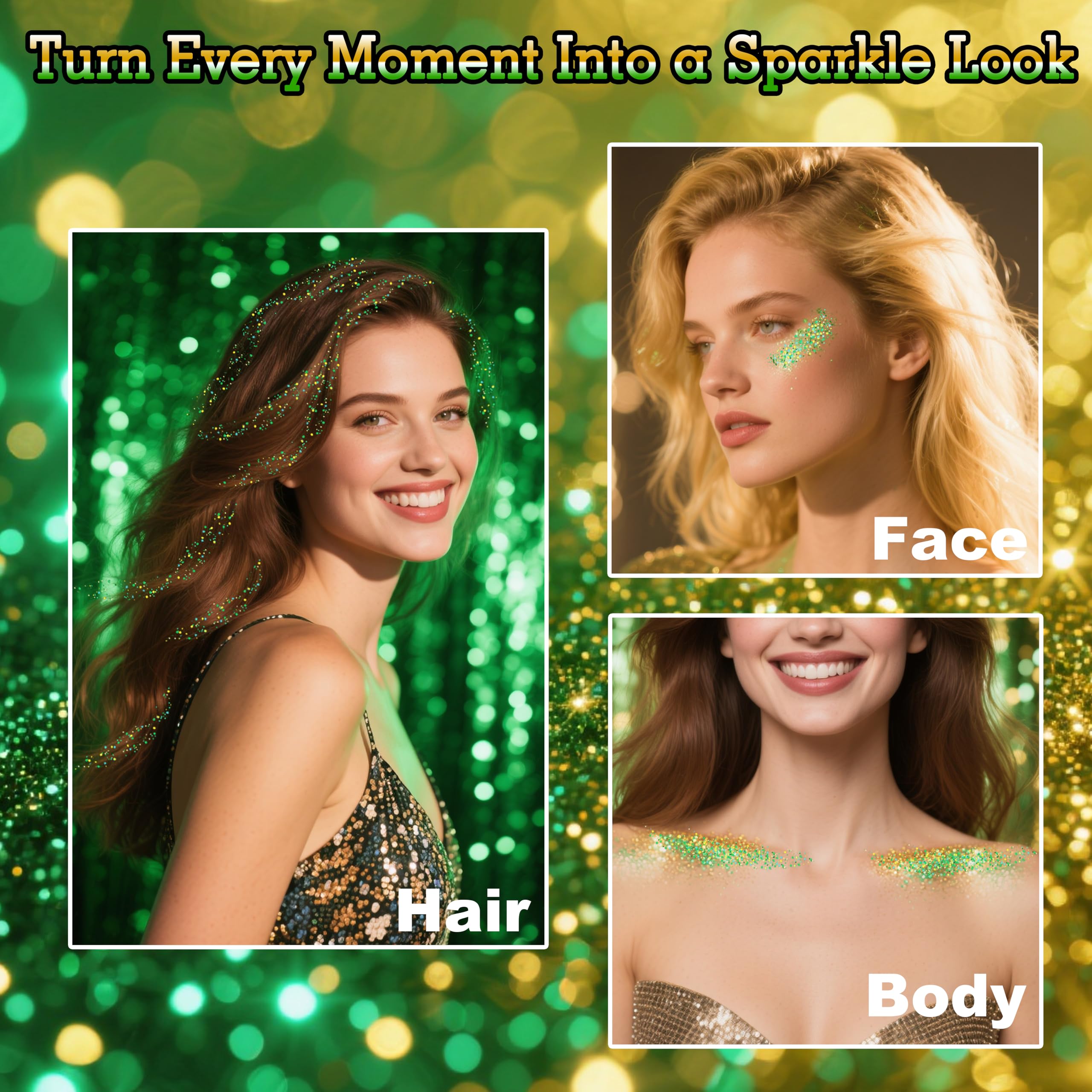 Long-Lasting Wear: Enjoy all-day or all-night glamour with this Alien Makeup glitter that stays put, resisting smudges and fading even through dancing or heat. It locks in place for hours, ensuring your look remains vibrant and flawless from start to finish,great St.Patrick's Day accessories and Mardi Gras Accessories for Women and kids.