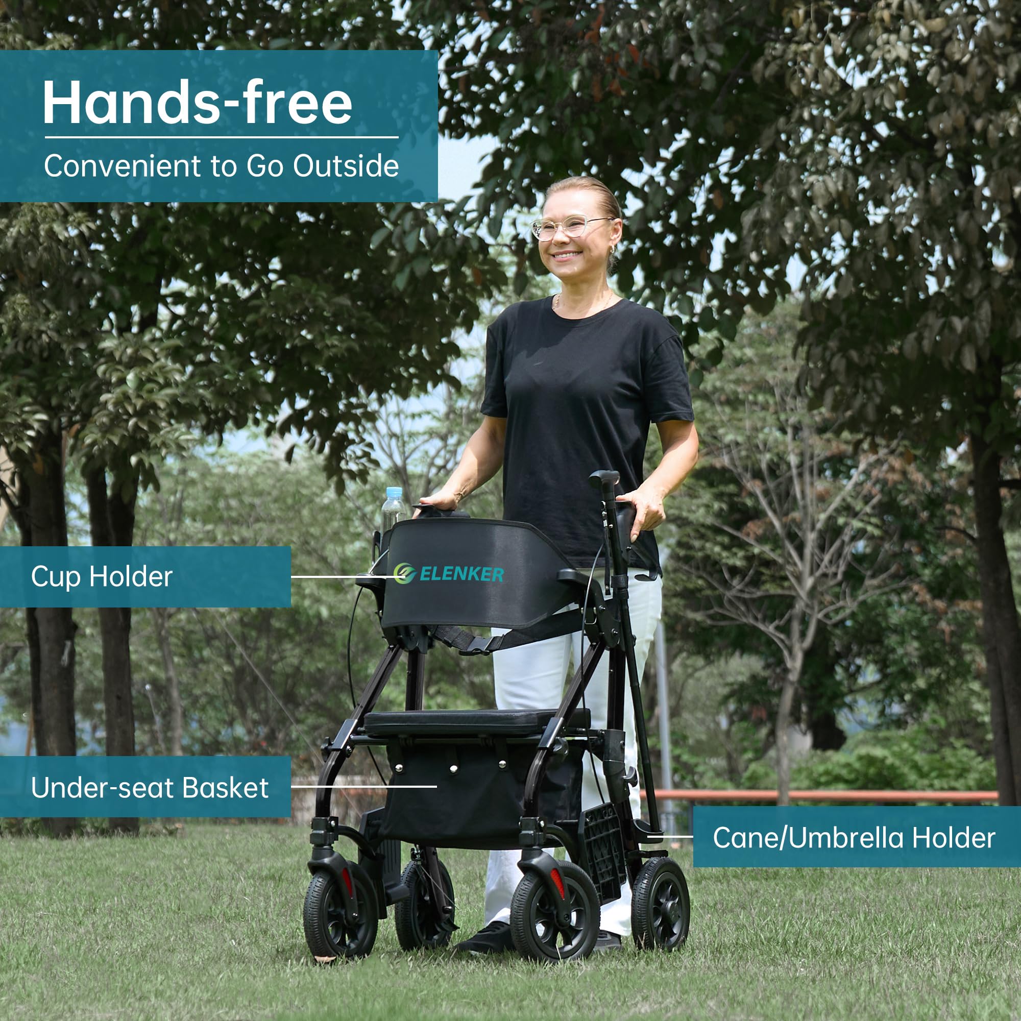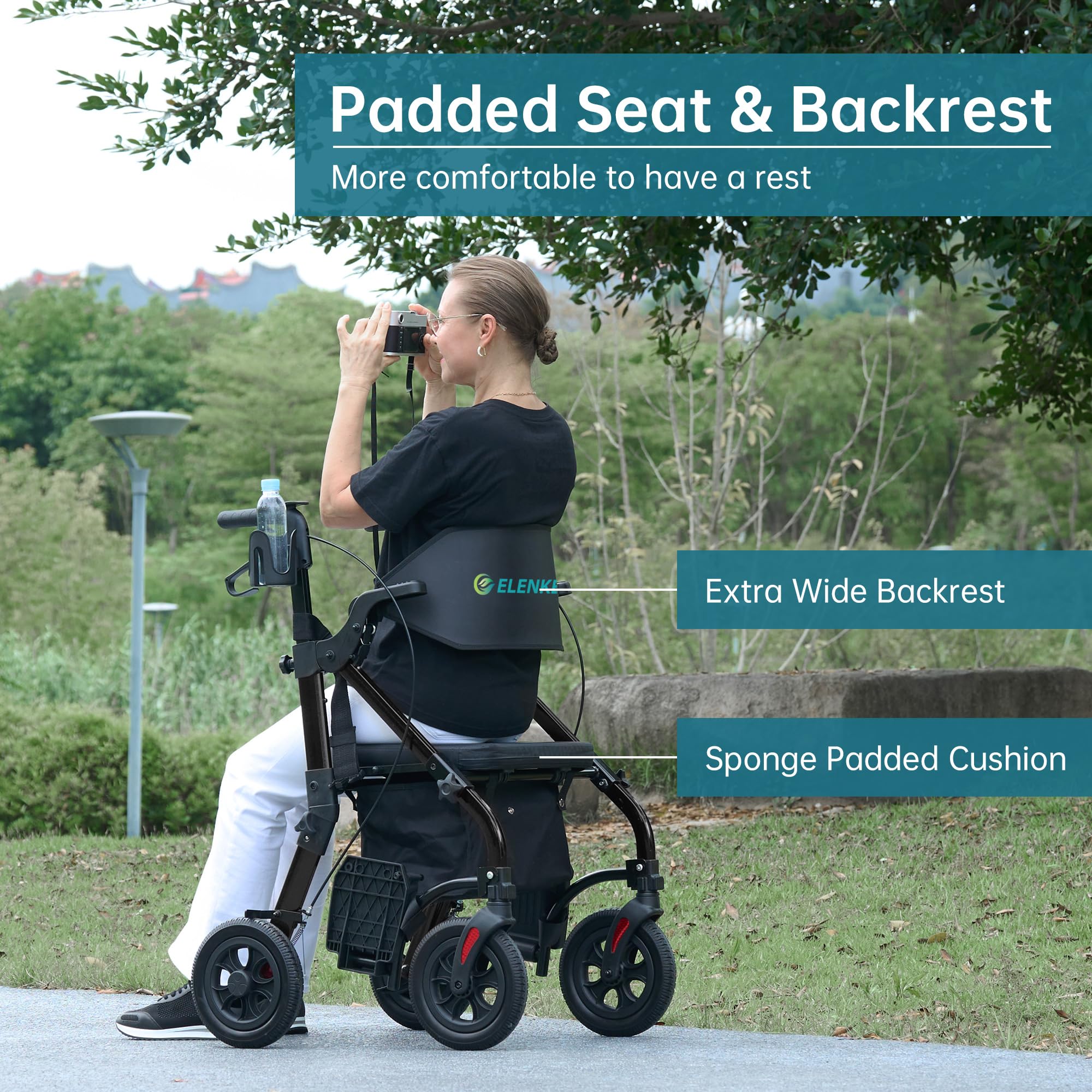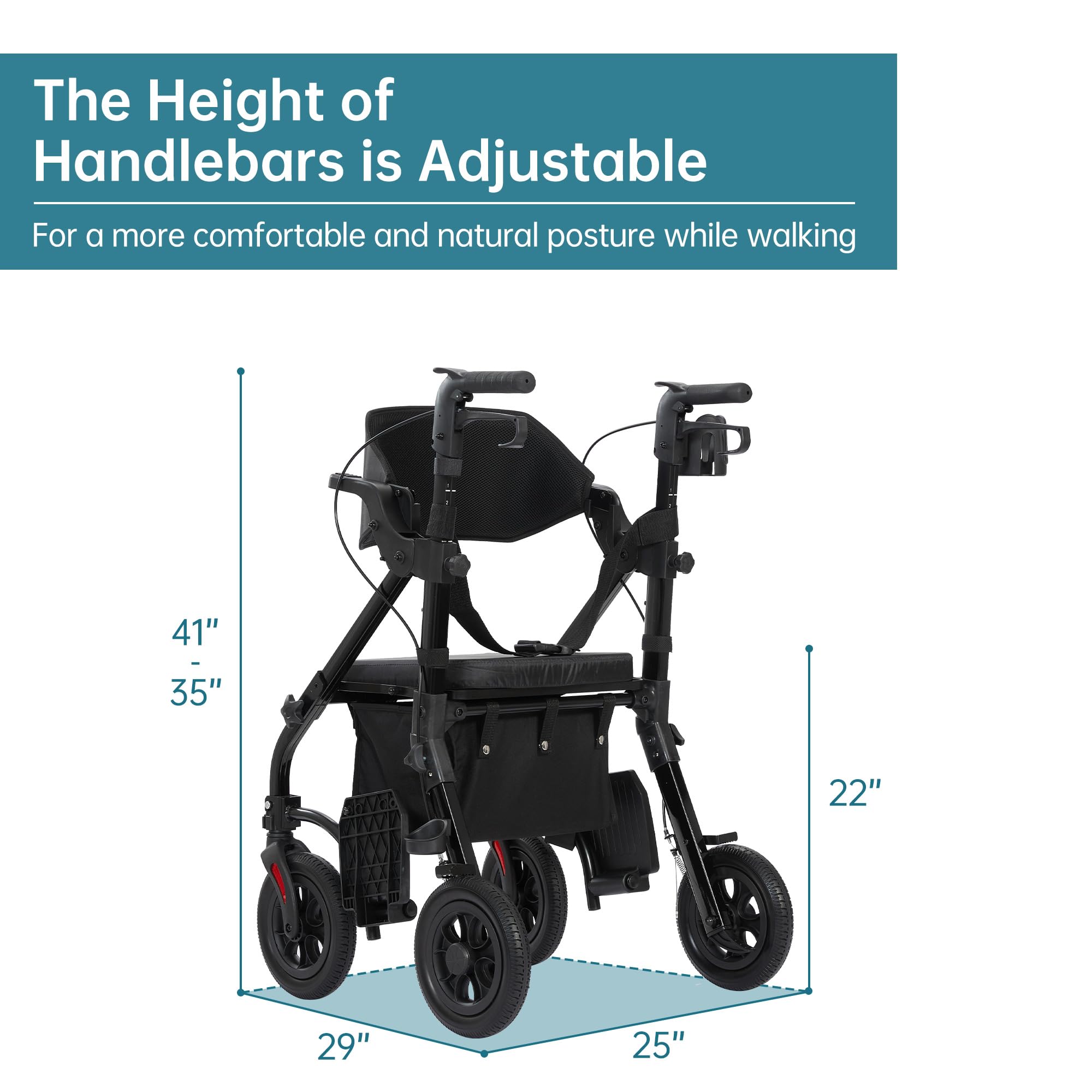 Multi-function Rollator Walker: Converts easily from a rollator to a transport wheelchair, offering versatility depending on the user's needs