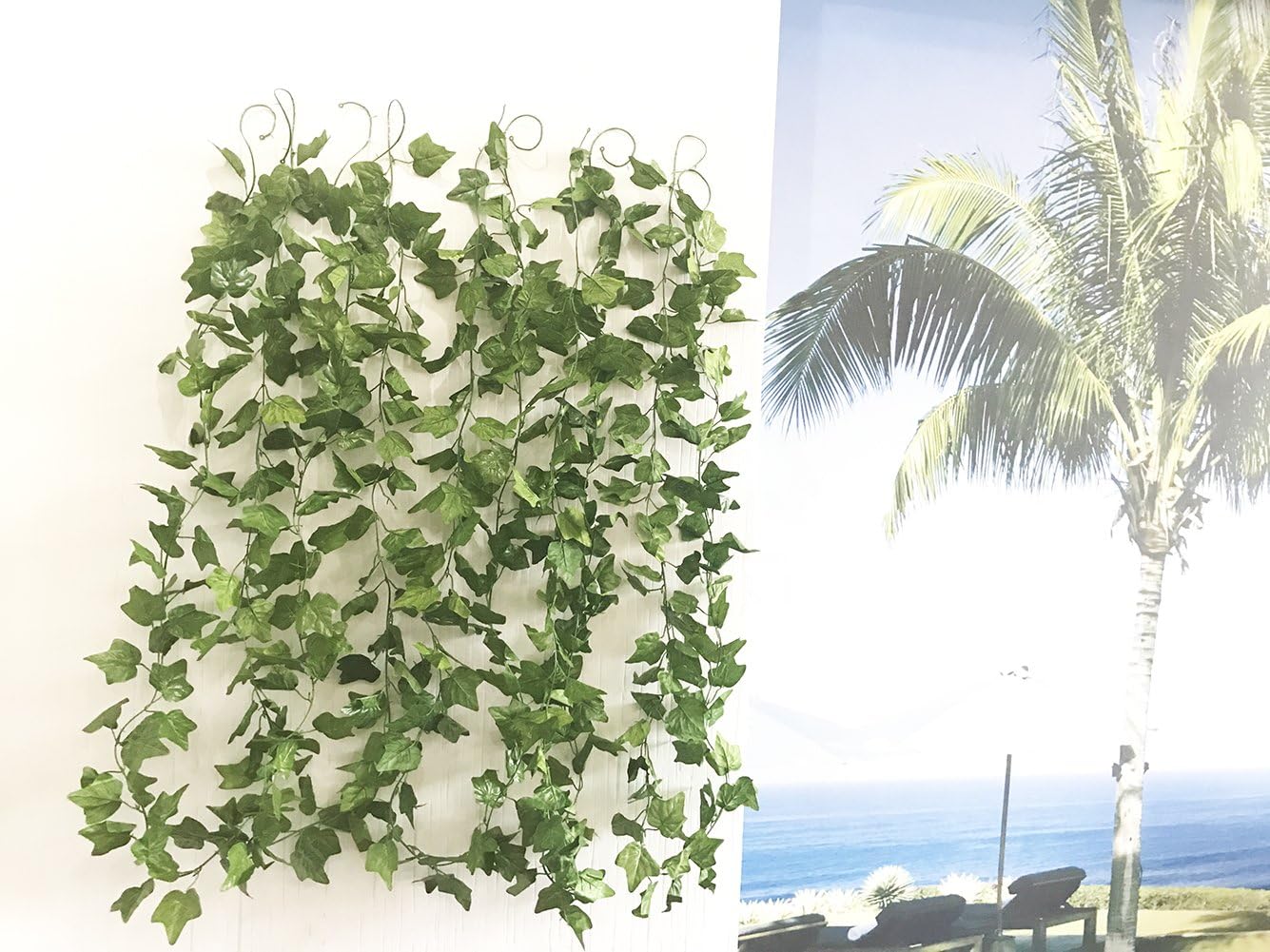 Artificial Ivy Silk Vines Fake Hanging Plants High Simulation Garlands Greenery Chain For Home Wedding Wall Party Decoration, Pack of 5 Specification: -INCLUDING: 5 strands artificial vines -Size:Total length appr.40 Feet.Each strand 8ft long. 90 leaves diameter approx 2.6" -Color:show as pictures -Material: Silk and Plastic Application: The artificial Ivy vines remain fresh and beautiful for years. Perfect all year round decoration,add more sunshine & greenery to your love home,enjoy your life.Great for wedding, home, party, bar, coffee store, book store, garden, outside and festival decoration.Great for all occasions, Thanksgiving day,Christmas day, Fathers Day, Mothers Day,Birthdays, Valentines Day or just any old day that calls for that special gift. Warm Tip: 1.Because of the faux plant is made with plastic, so there maybe will have some smell. Please put the plant placed in ventilated place for 1-2 days. 2.A long time of the sun exposure will affect the use of leaves,Plant dirty can be used wet towel to wipe. 3.Since the size above is measured by hand, the size of the actual item you received could be slightly different from the size above. Meanwhile, please be reminded that due to lighting effects, monitor's brightness / contrast settings etc, there could be some slight differences in the color tone of the pictures and the actual item.