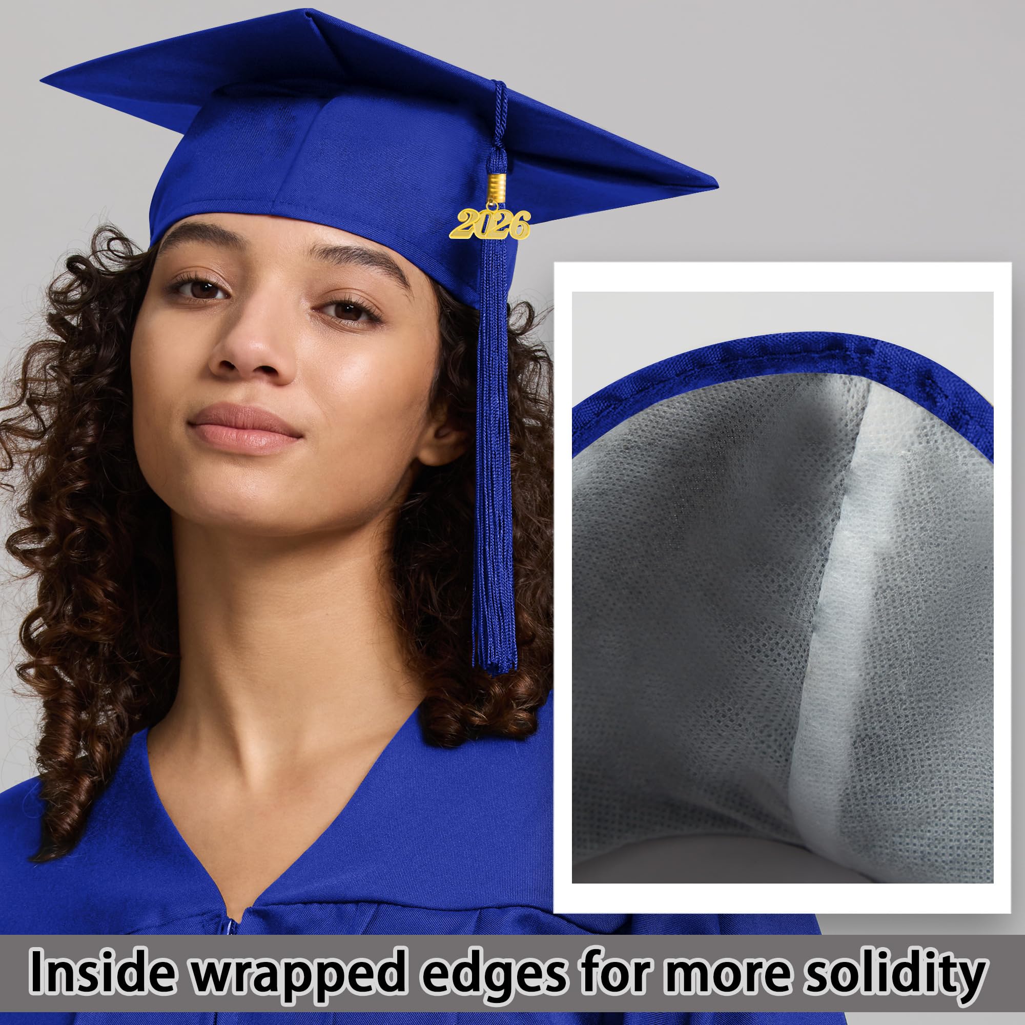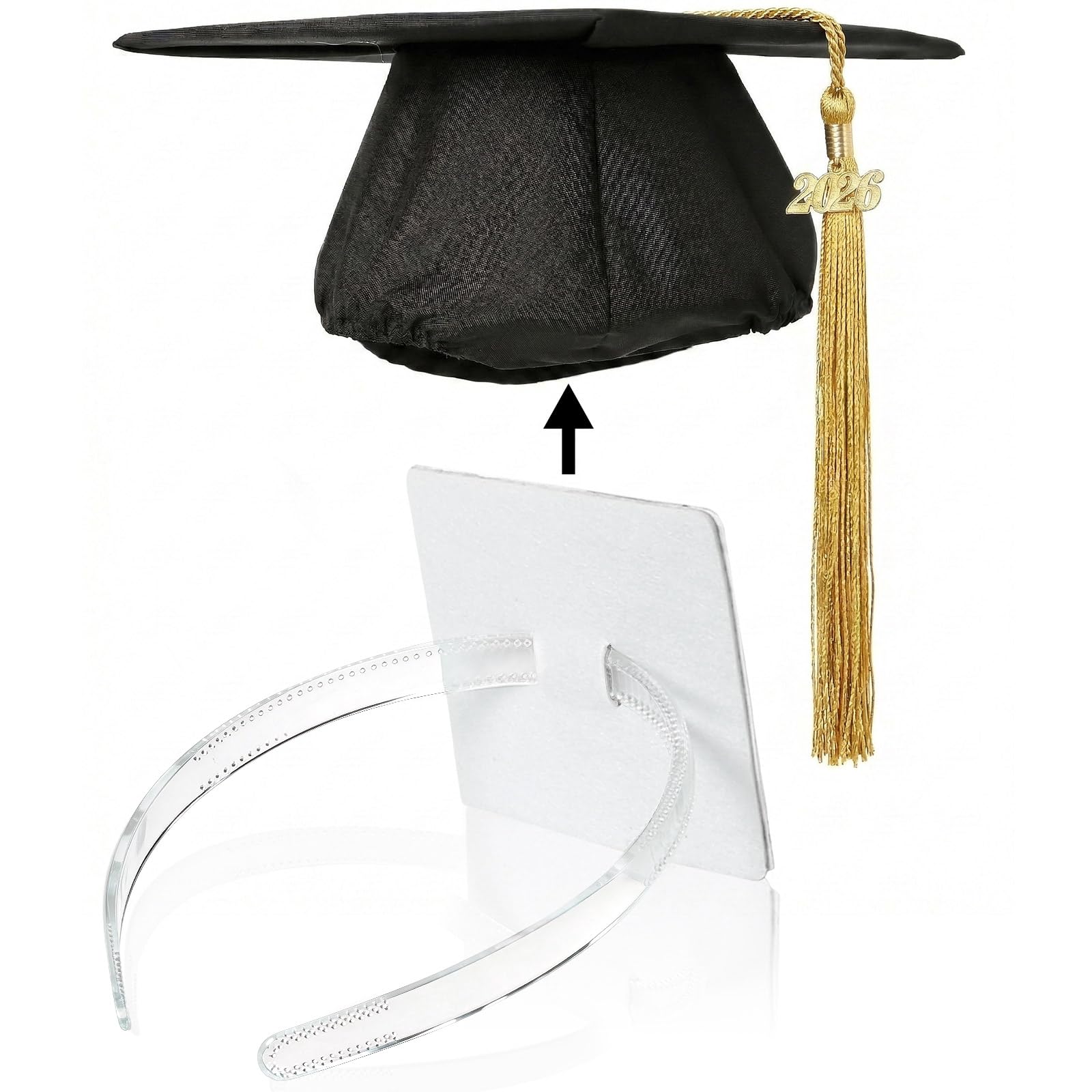 PRODUCT SPECIFICATIONS,PREMIUM MATERIAL:This graduation cap features a classic 9x9 inches hardboard top covered in high-quality matte polyester. It comes with a 9-inch long tassel and a detachable 2026 year charm. The elegant matte finish ensures you look professional and polished on your big day.