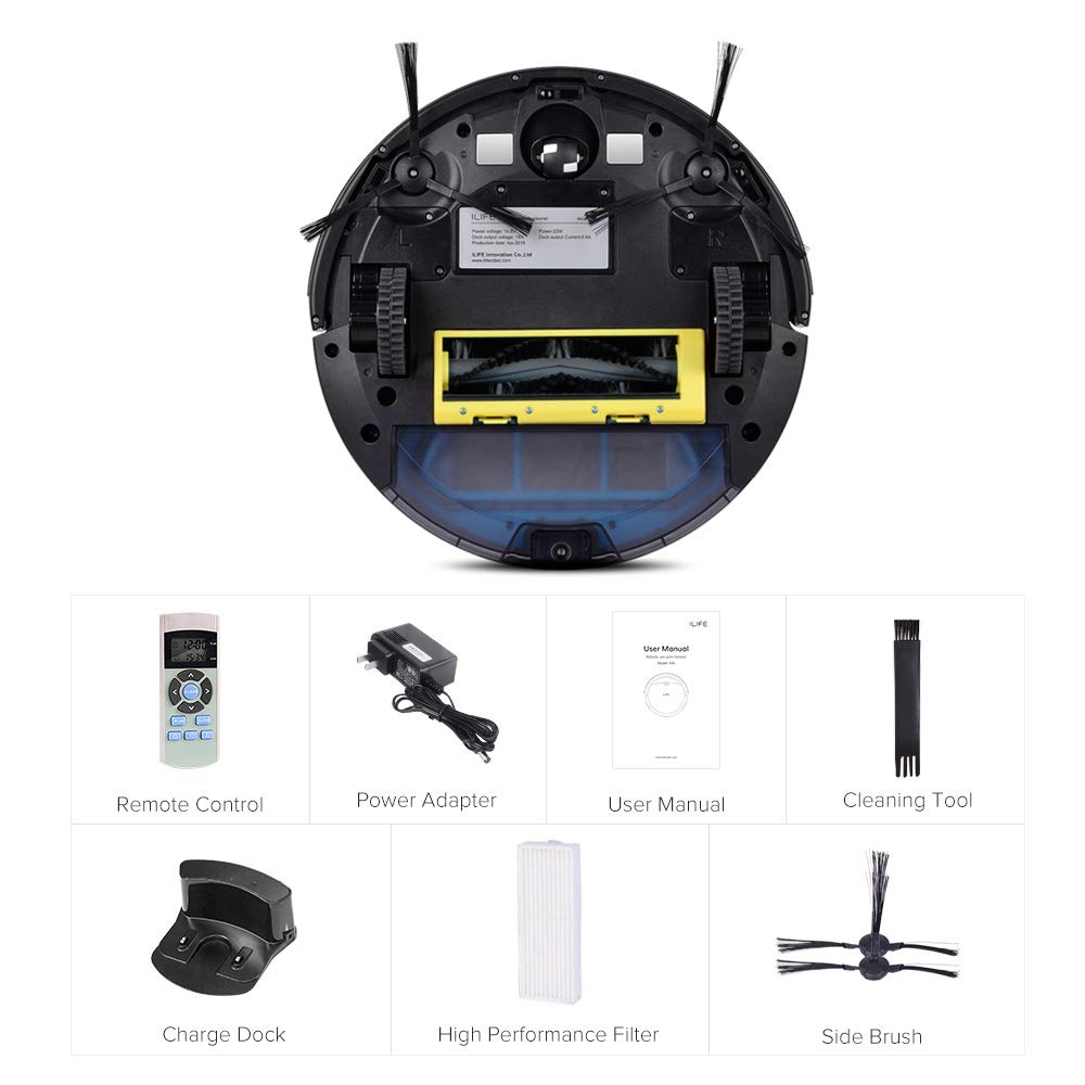 What You Get: ILIFE A4s robot vacuum, remote control, charging dock, AC power adapter, cleaning tool, extra set of high-performance filters, extra set of side brushes, user guide and our worry-free 12-month warranty,offer our best service.
