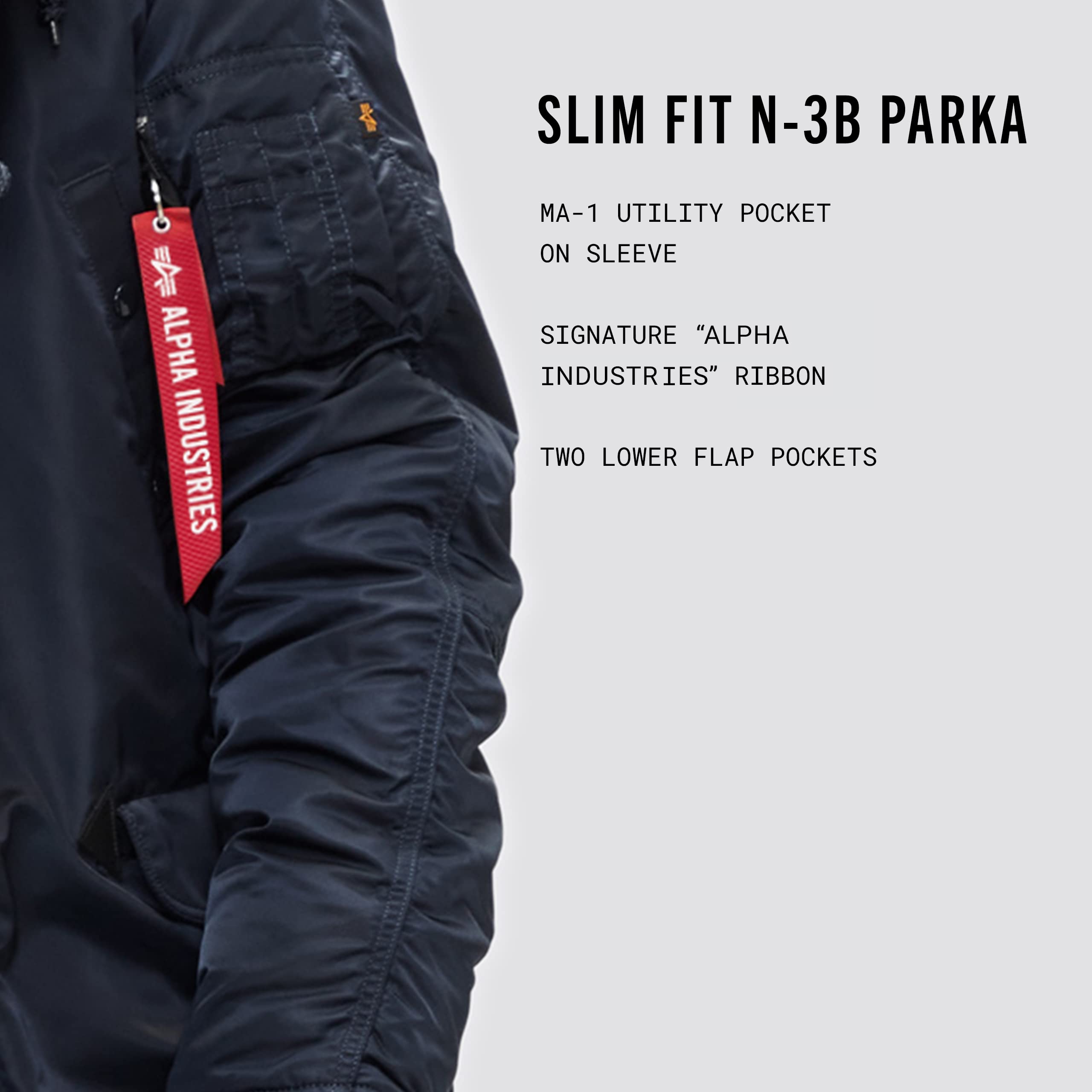 AUTHENTIC DESIGN - N-3B parka is the first piece of outerwear that Alpha Industries created for the military back in 1959. The N-3B was created to protect Air Force ground and crew members from the extreme cold weather climates. First offered in midnight blue, the parka was later changed to a sage green and re-designed when it was adopted by all military services.
