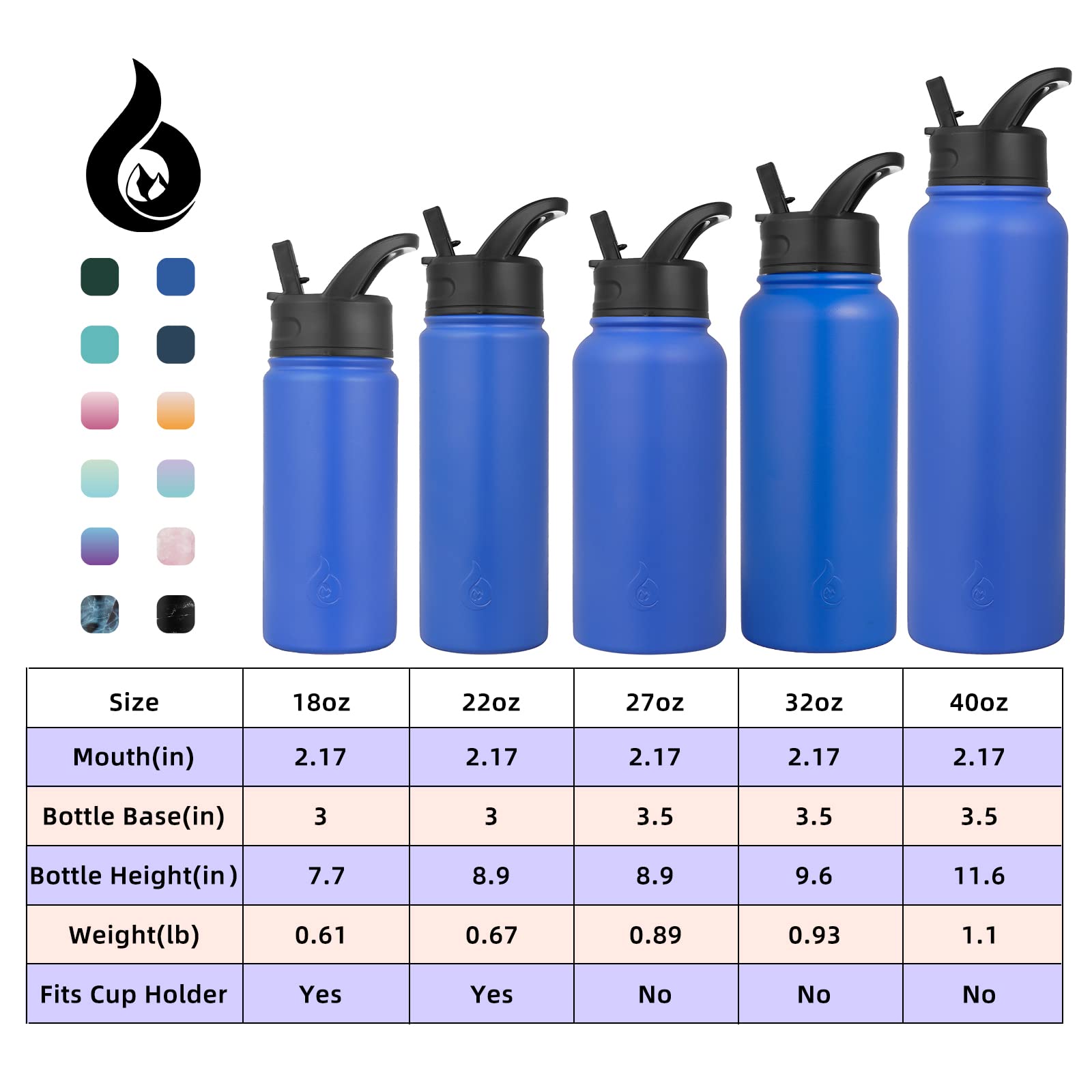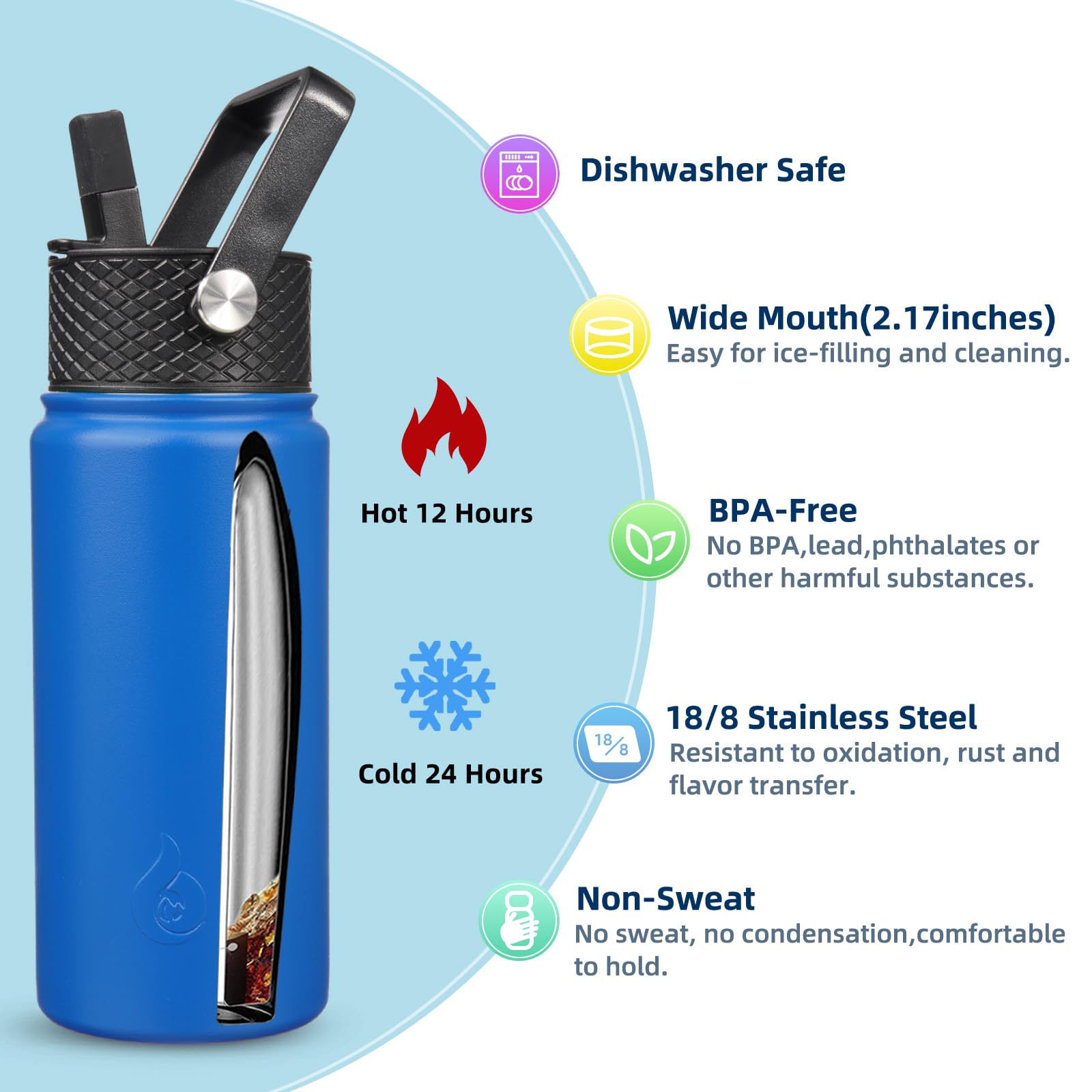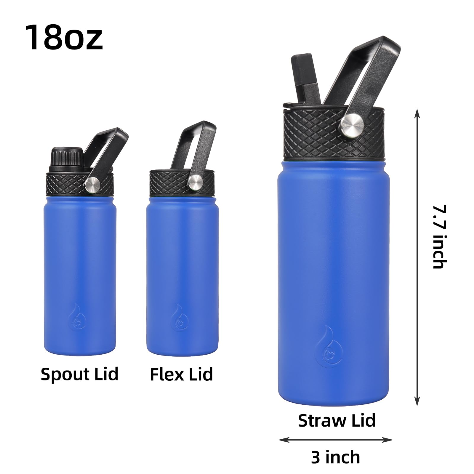 BJPKPK Insulated Water Bottles with Straw Lid, 18oz Stainless Steel Metal Water Bottle, Cold & Hot Water Bottle with 3 Lids, Leak Proof BPA Free Travel Cup, Wide Mouth Flasks, Thermo -Sapphire