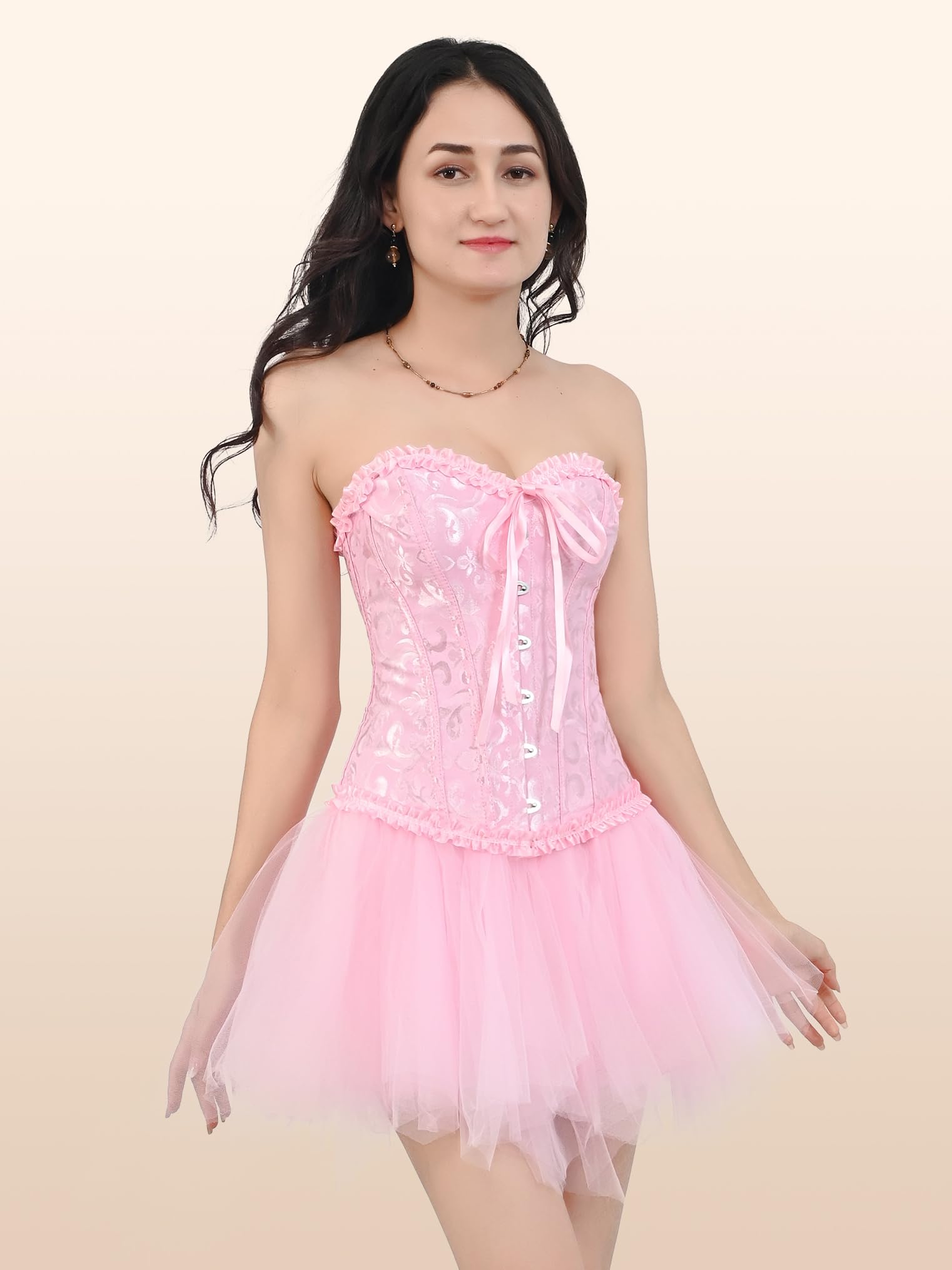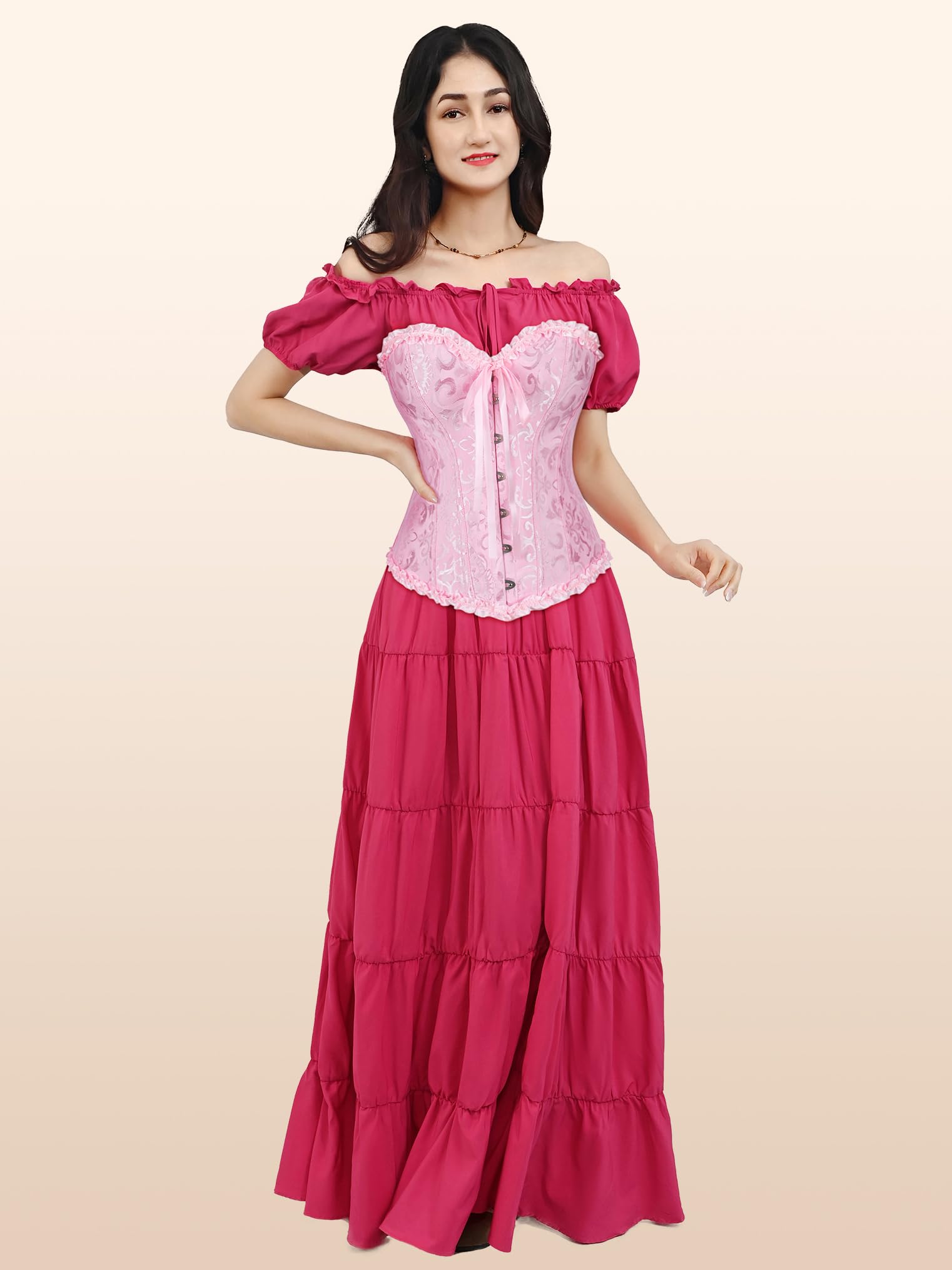 Victorian lace corset: Gothic to renaissance-ready crafted with floral brocade fabric and satin ribbon trim for authentic vintage appeal,this overbust style offers full coverage while accentuating curves,perfect for historical reenactors and fashion-forward women,the built-in modesty panel enhances authenticity for vampire,witch,or pirate costumes,pro tip: pair with high-waisted skirts or layered dresses for instant gothic glam.