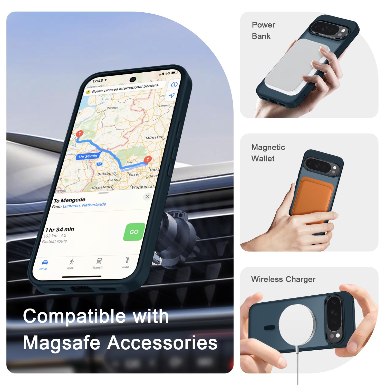 Compatible with Magsafe & Magnetic : The built-in array of 36Pcs N52 magnets perfectly aligned with the phone charging coils, better compatible with Mag-Safe chargers and magnetic battery banks, providing a more stable, compatible and faster charging experience. The magnets array provide a 18N strong magnetic power and 2400GS magnetism, make the case work together with magnetic accessories stably and securely, such as magnetic car mounts, holders, wallets and battery banks