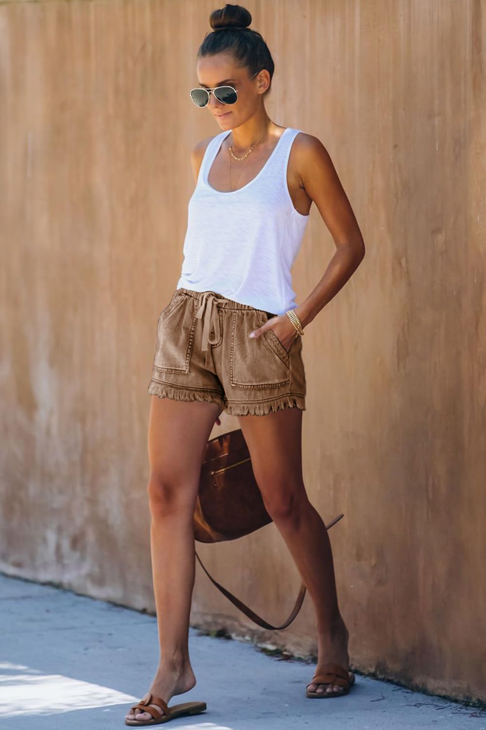 Mid/High-rise elastic waistband,Adjustable waist drawstring ,Pockets both sides and back,Bottom of pants Tassel design,cute,Lightweight, Tassel,Solid color,Loose fitting ,Casual,Young,Trendy 2025,Elegant style