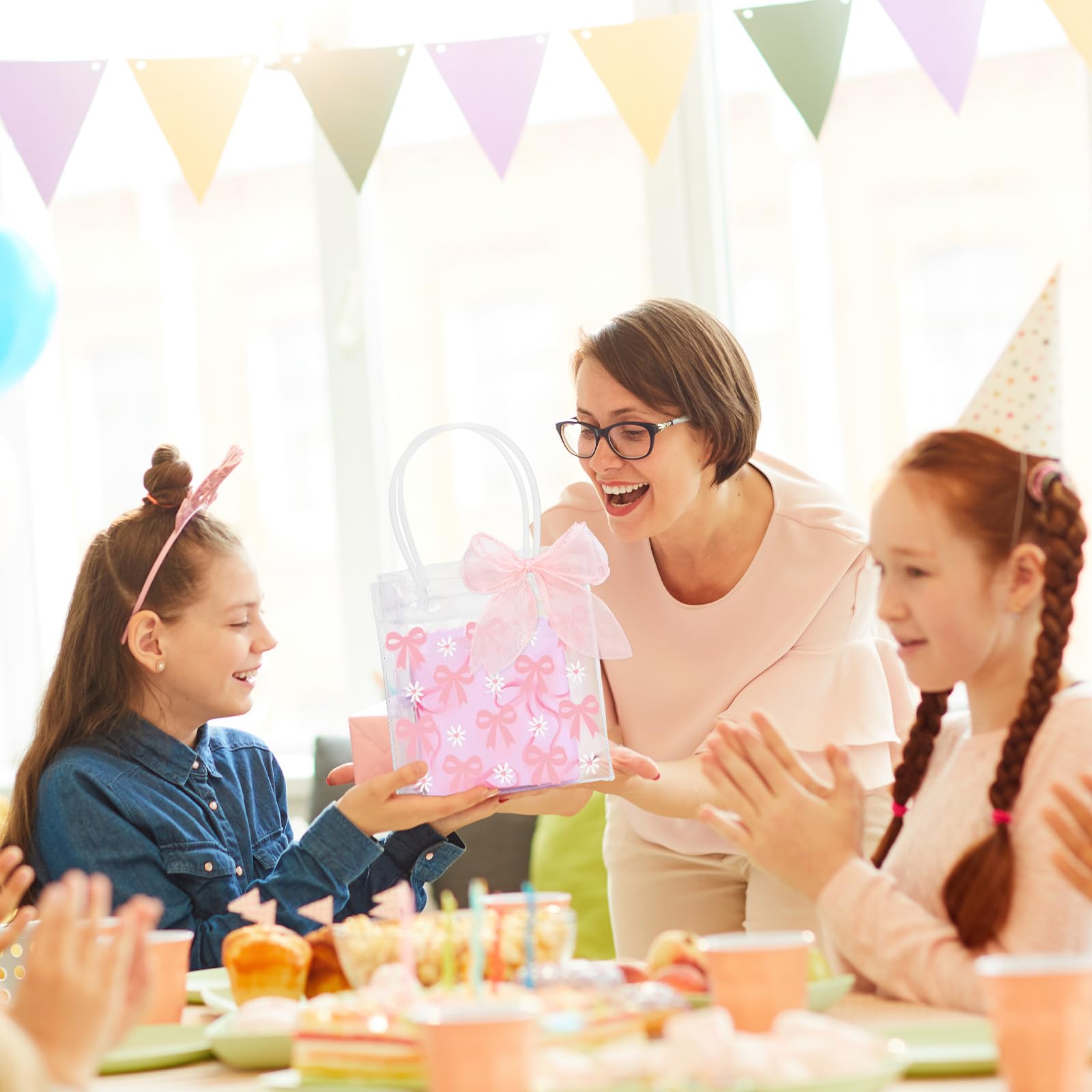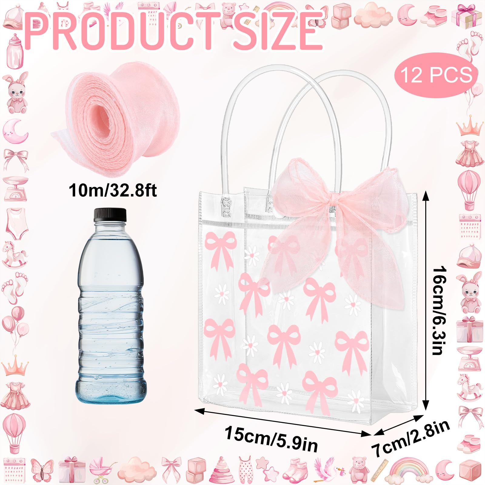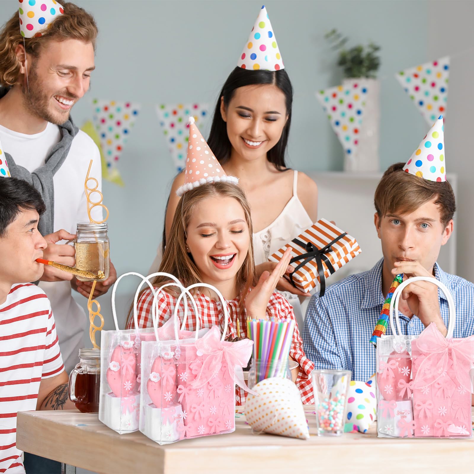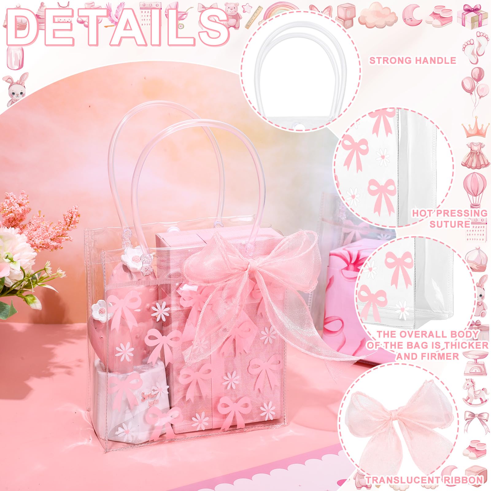 The Package Includes: 12 Pcs bow clear gift bags with handles, come with 1 roll of pink ribbon, will offer enough quantity and delicate design to meet your various needs of daily use and party favor