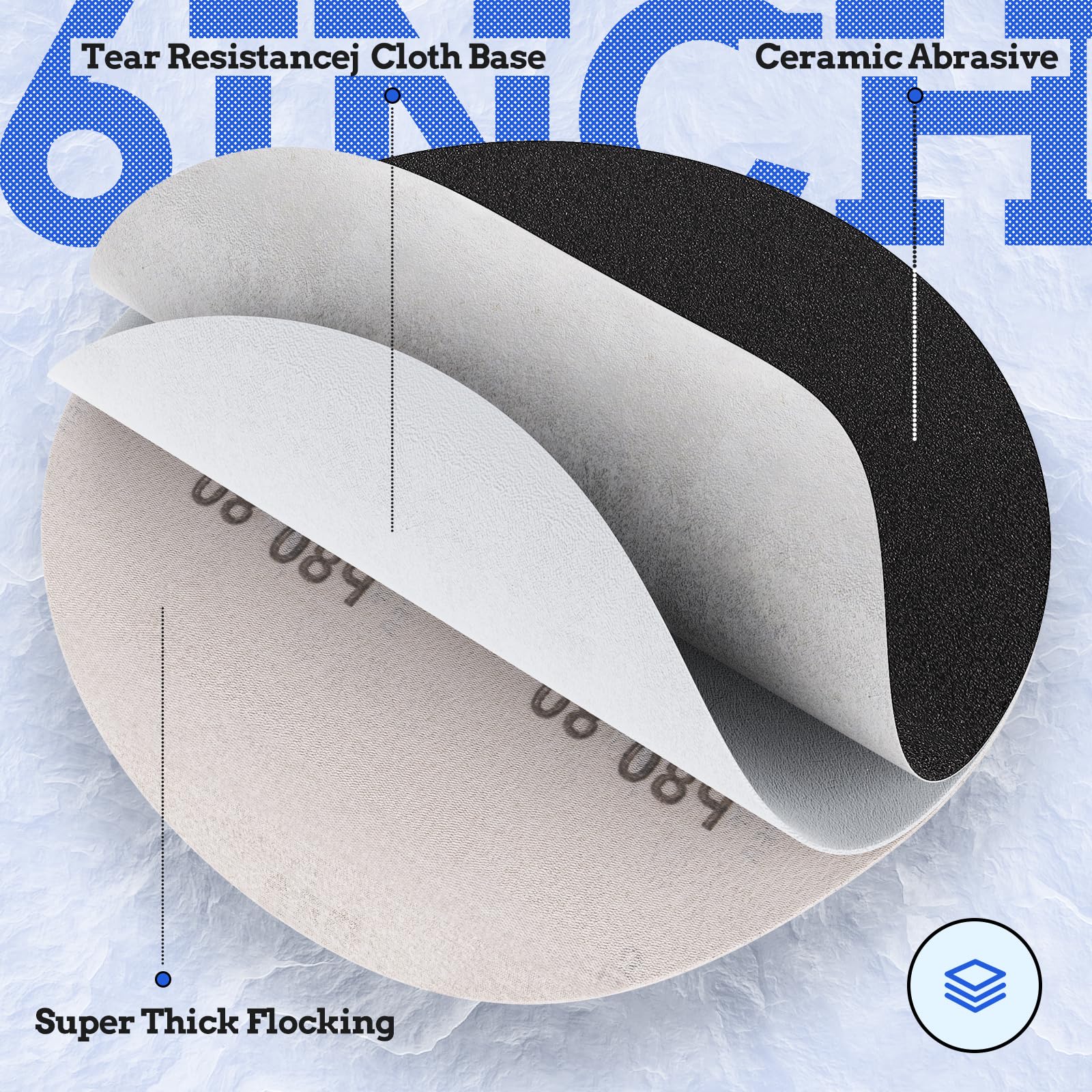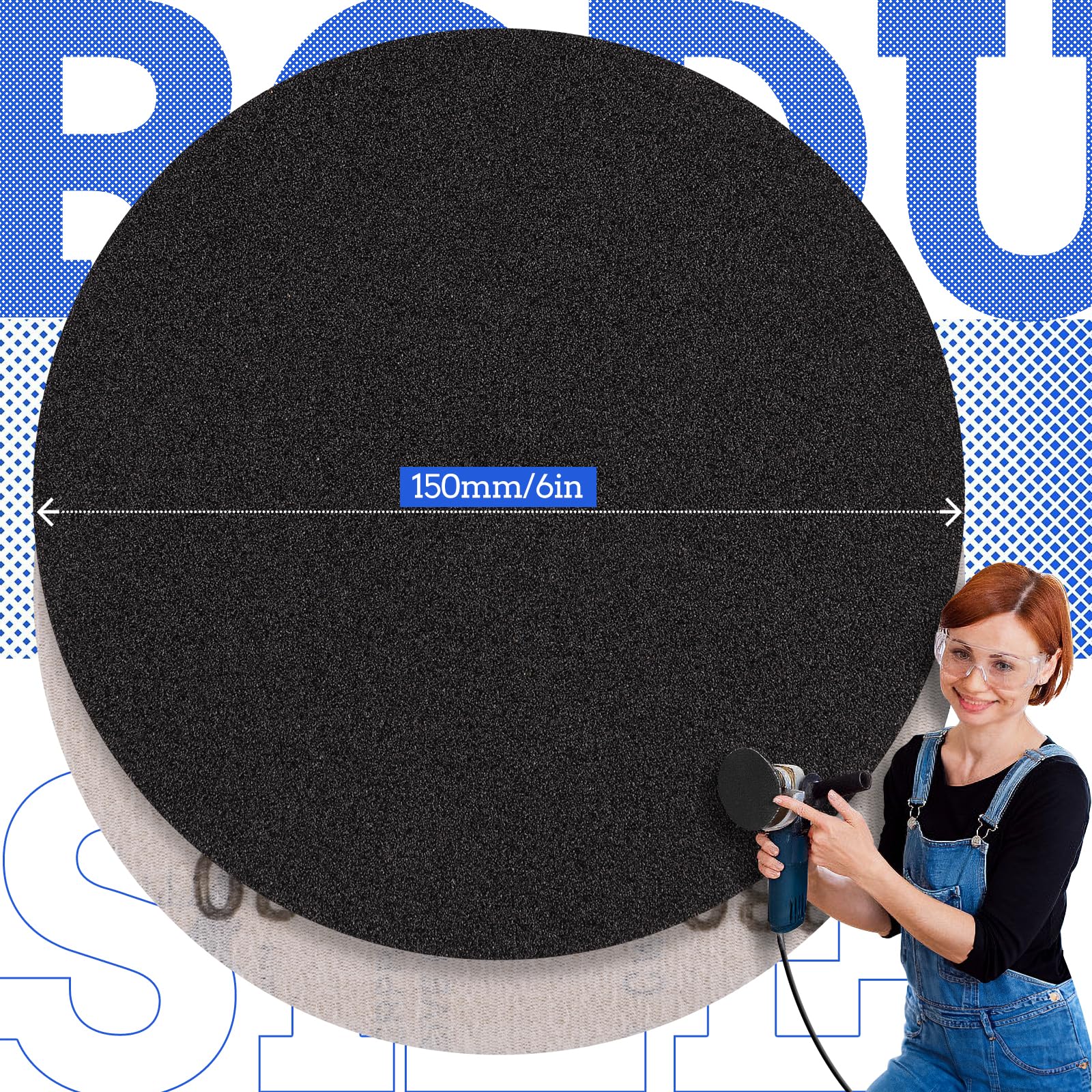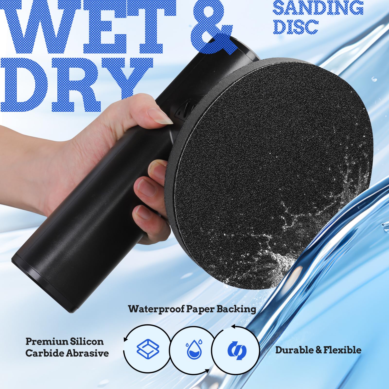 STEBRUAM 150MM Black SANDING DISCS: Made of premium silicon carbide and waterproof paper. Ideal for wet and dry sanding. Wet sanding can minimizing scratches, prevent sandpaper from clogging with dust, removes loose abrasive particles and reduces airborne dust.