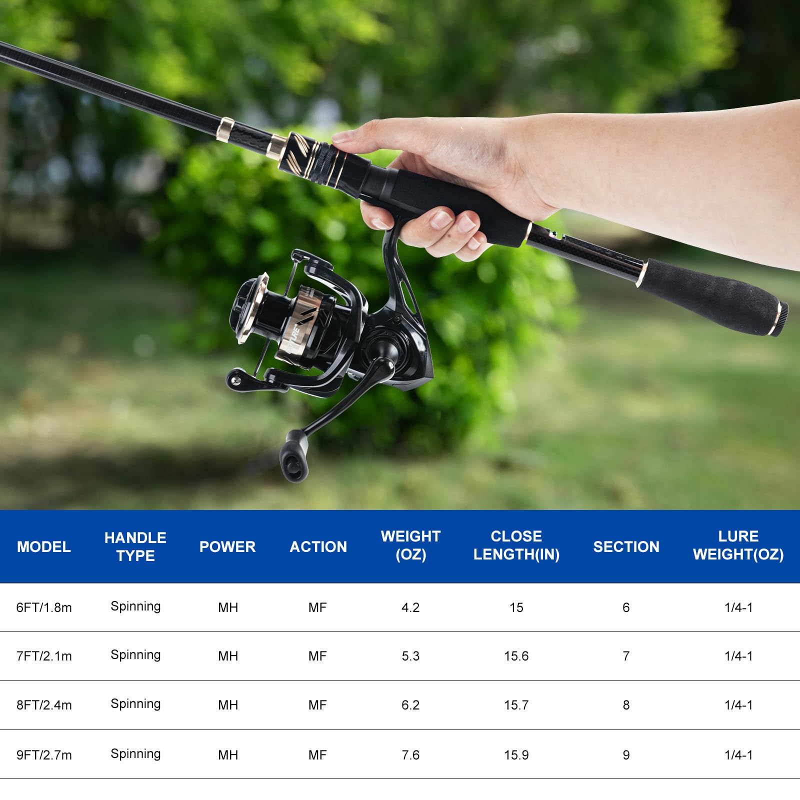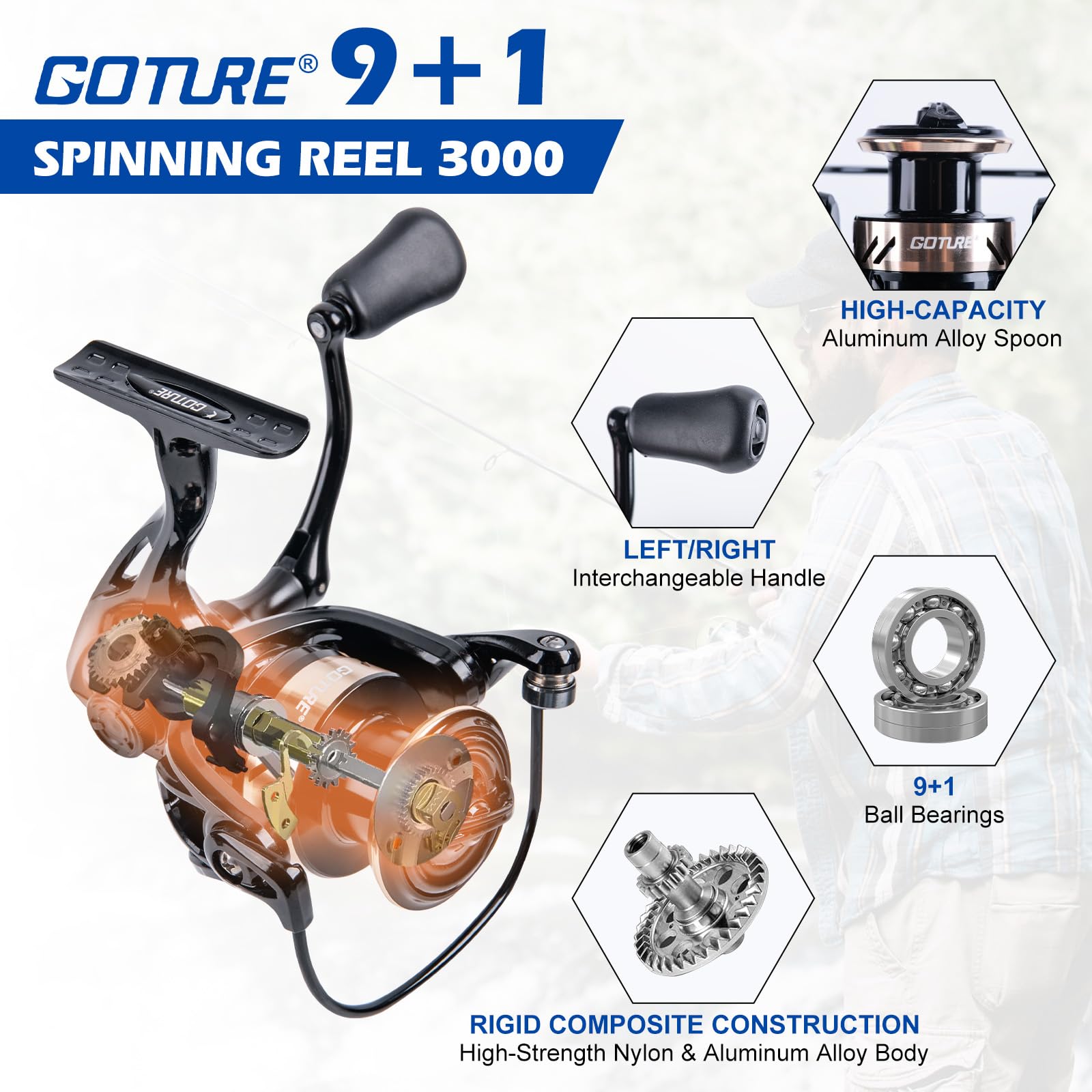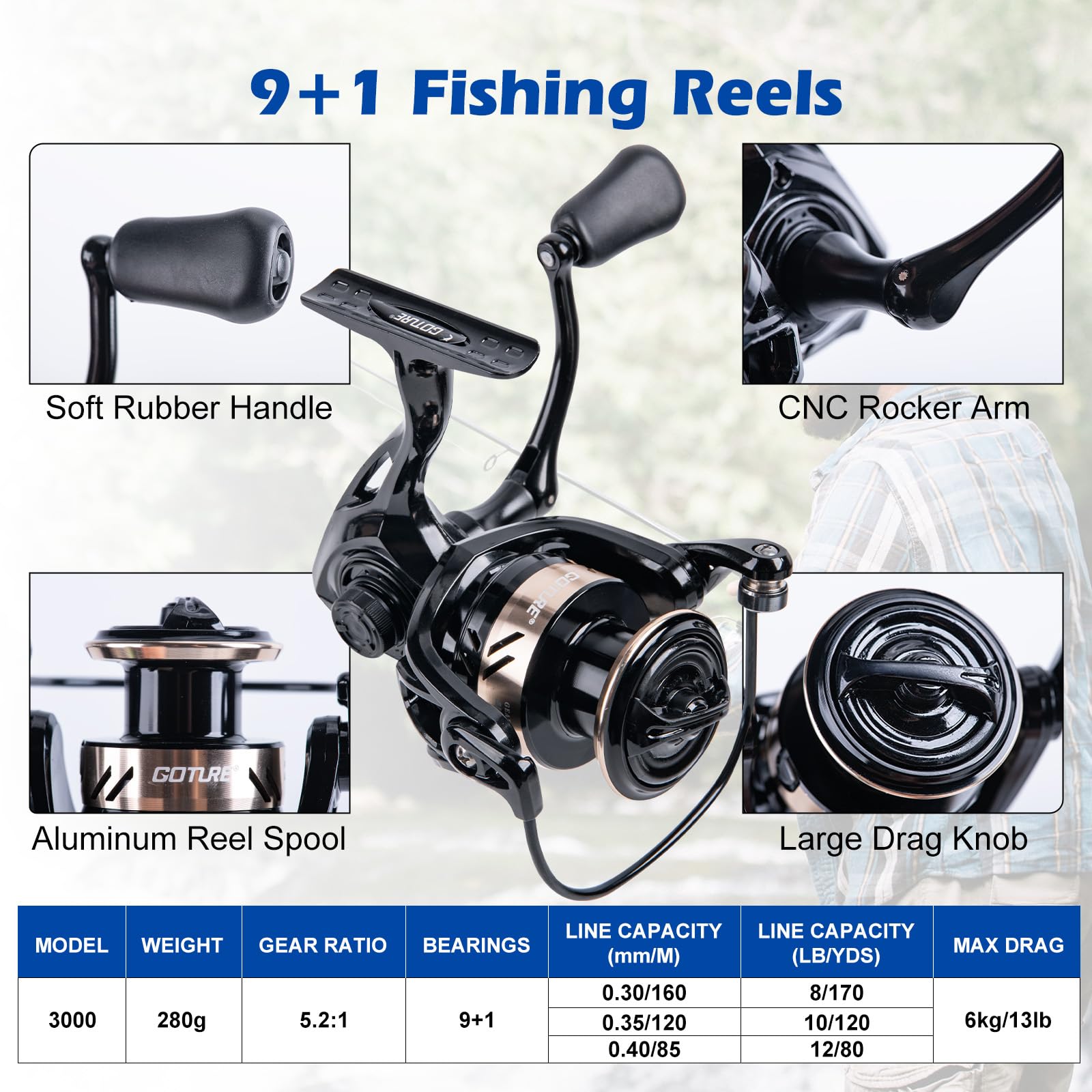 【High-Speed 9+1BB Spinning Reel】Engineered with a high-strength nylon and aluminum alloy body for maximum rigidity, it features a large, quick-adjust drag knob and an instant anti-reverse switch for total control over powerful fish. The 9+1 stainless steel bearing system ensures incredibly smooth operation, while the vented metal spool reduces weight for better performance. This complete kit includes a stylish reel bag for protection and portability.