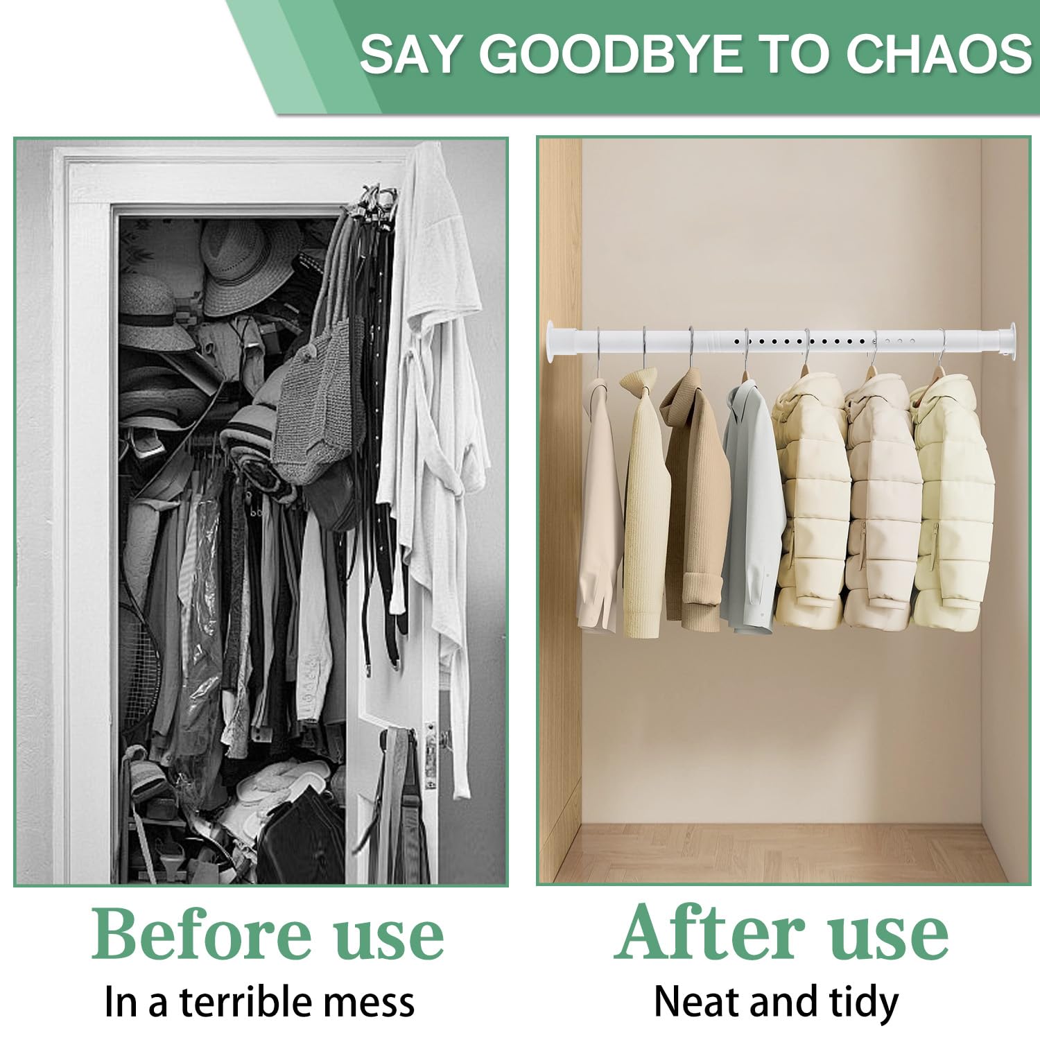 👗 Wide Application: The clothes rod for the wardrobe can be used in various areas of the home such as closets, windows, bathrooms, bedrooms, laundry rooms, balconies, door curtain, etc.