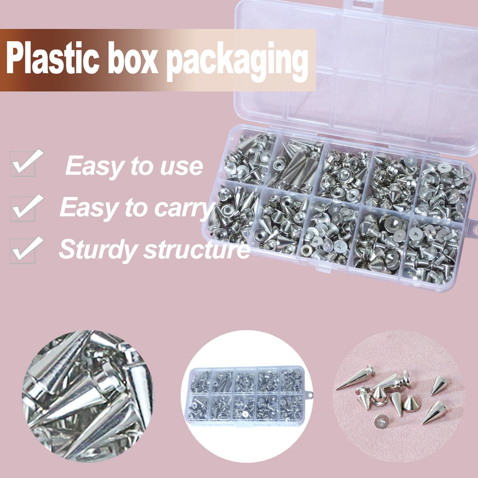 Easy to Use:These punk metal spikes studs are all designed in suitable and proper size, easy for you to install,just need punch a hole and screw on.These spikes studs can be firmly installed