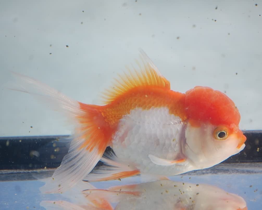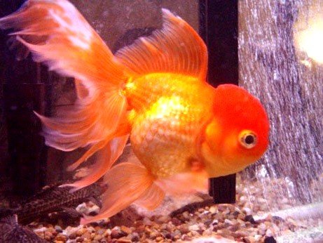 Adult oranda goldfish. Red/golden color with wen present.
