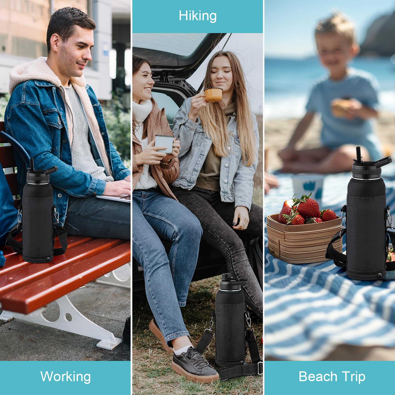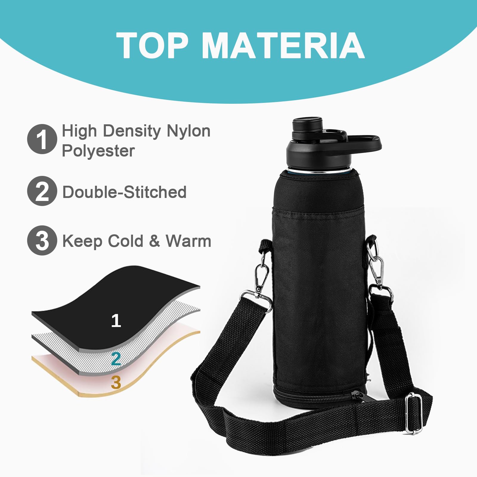 STRONG MATERIAL AND INSULATED INSIDE: Our water bottle holder is made of high-quality and water-resistant fabric, protect your water bottle from scratches or loss.Plus, the insulated interior keeps your drinks at the ideal temperature, whether it's warm or cold.