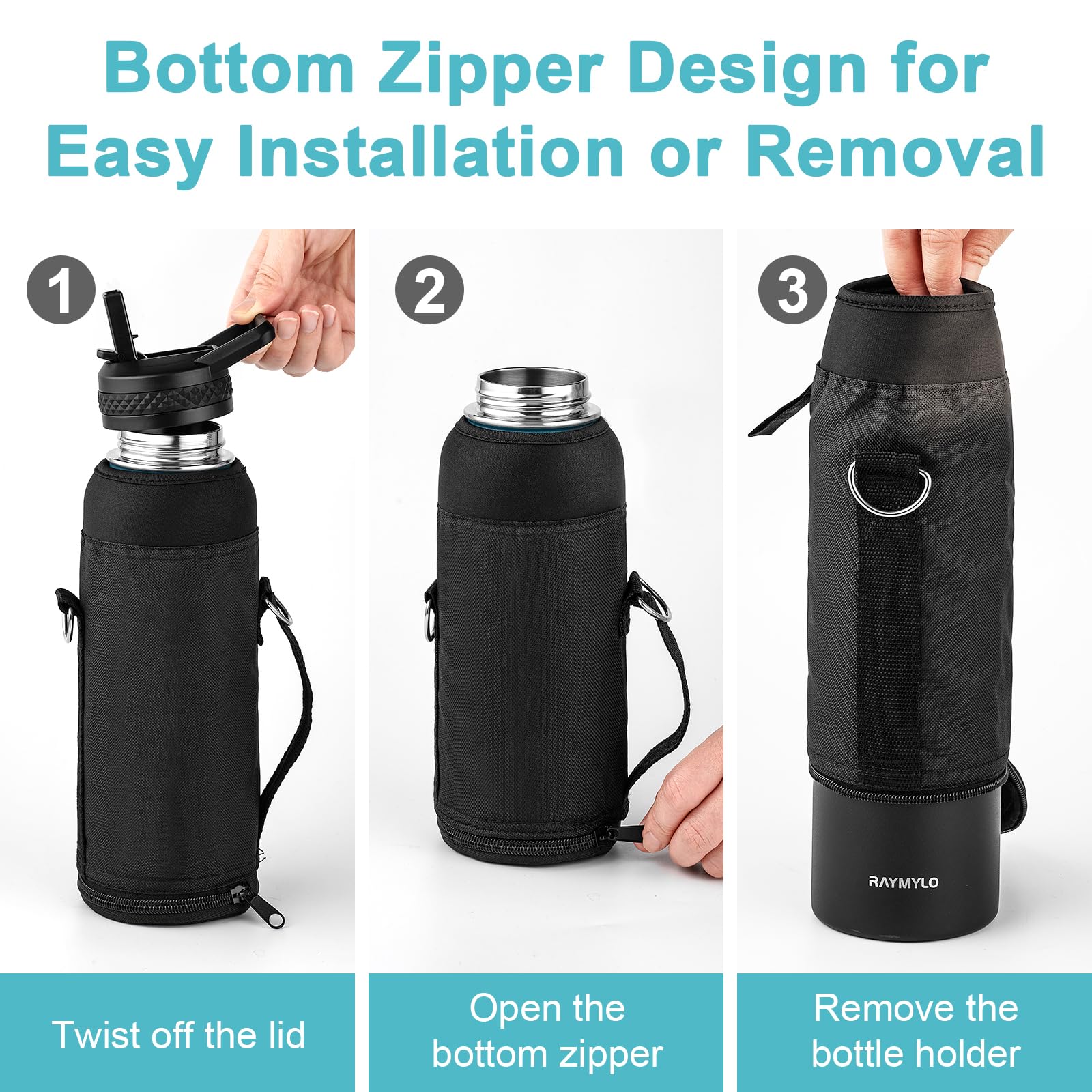 RAYMYLO Water Bottle Holder for 40 oz Bottles with an Adjustable Padded Shoulder Strap - Made of High Density Nylon Polyester, Carry, Protect and Insulate Your Flask What You Get: 1 x RAYMYLO Water Bottle Holder 1 x Adjustable Padded Shoulder Strap. 7 x 24H Online Continuous After-sales Service Please Note that the Maximum Size of Suitable Water Bottle is: Height: 10.39”(26.39 cm) Bottom Diameter: 3.54”(8.99 cm)