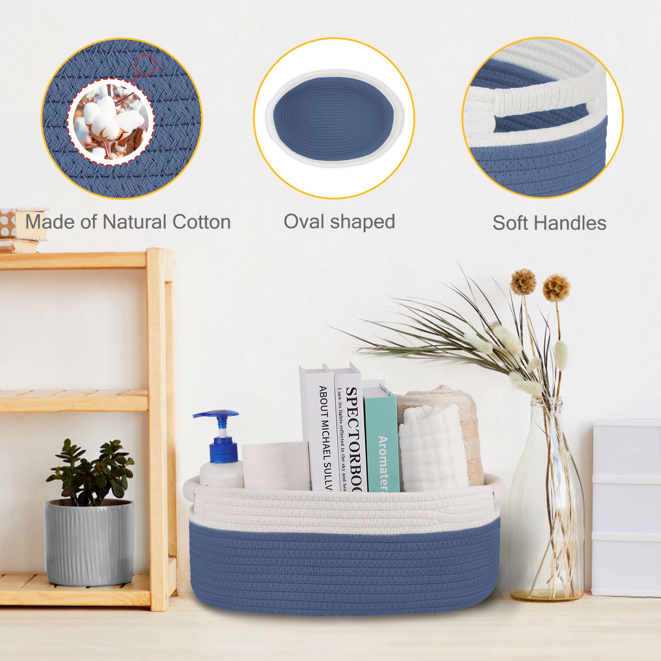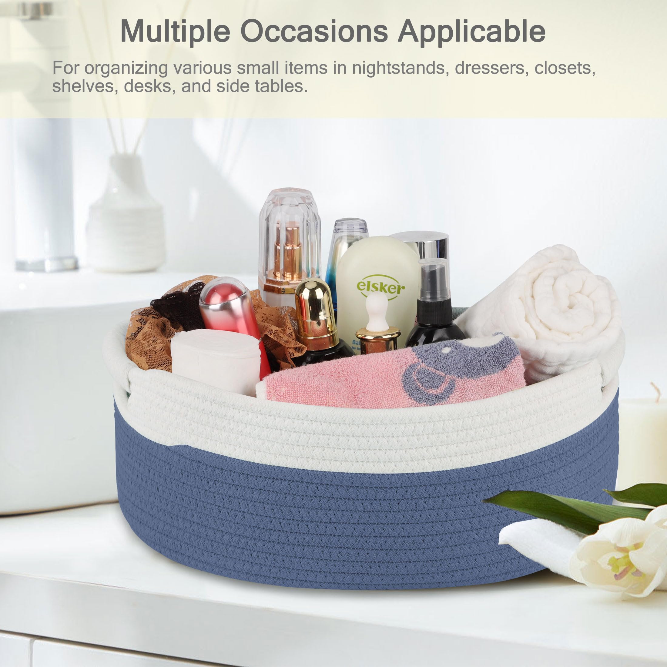【Multiple Occasions Applicable】This woven storage basket is suitable for many indoor occasions. Suitable for organizing a variety of small items in bedside tables, dressers, closets, nurseries, bathrooms, dens, bedrooms and living rooms. After use, our rope woven basket will keep your room clean and tidy.
