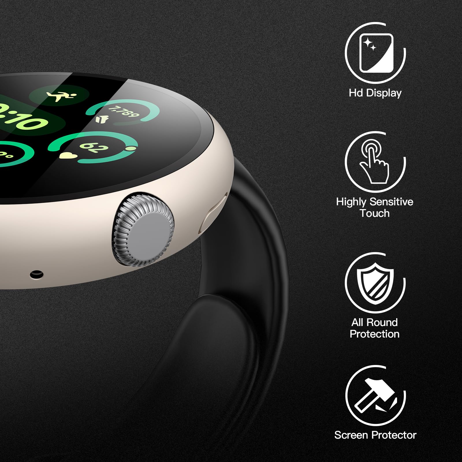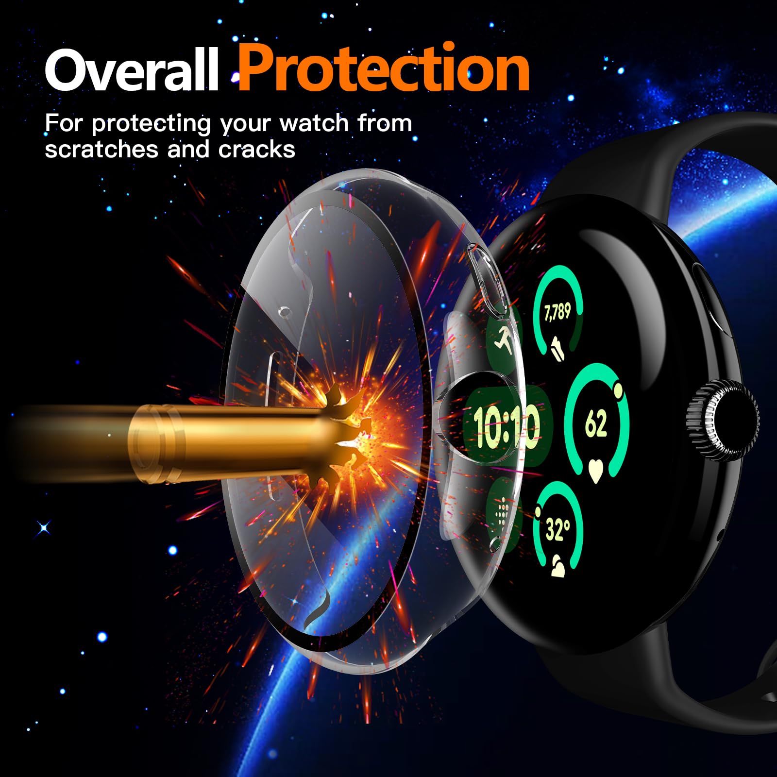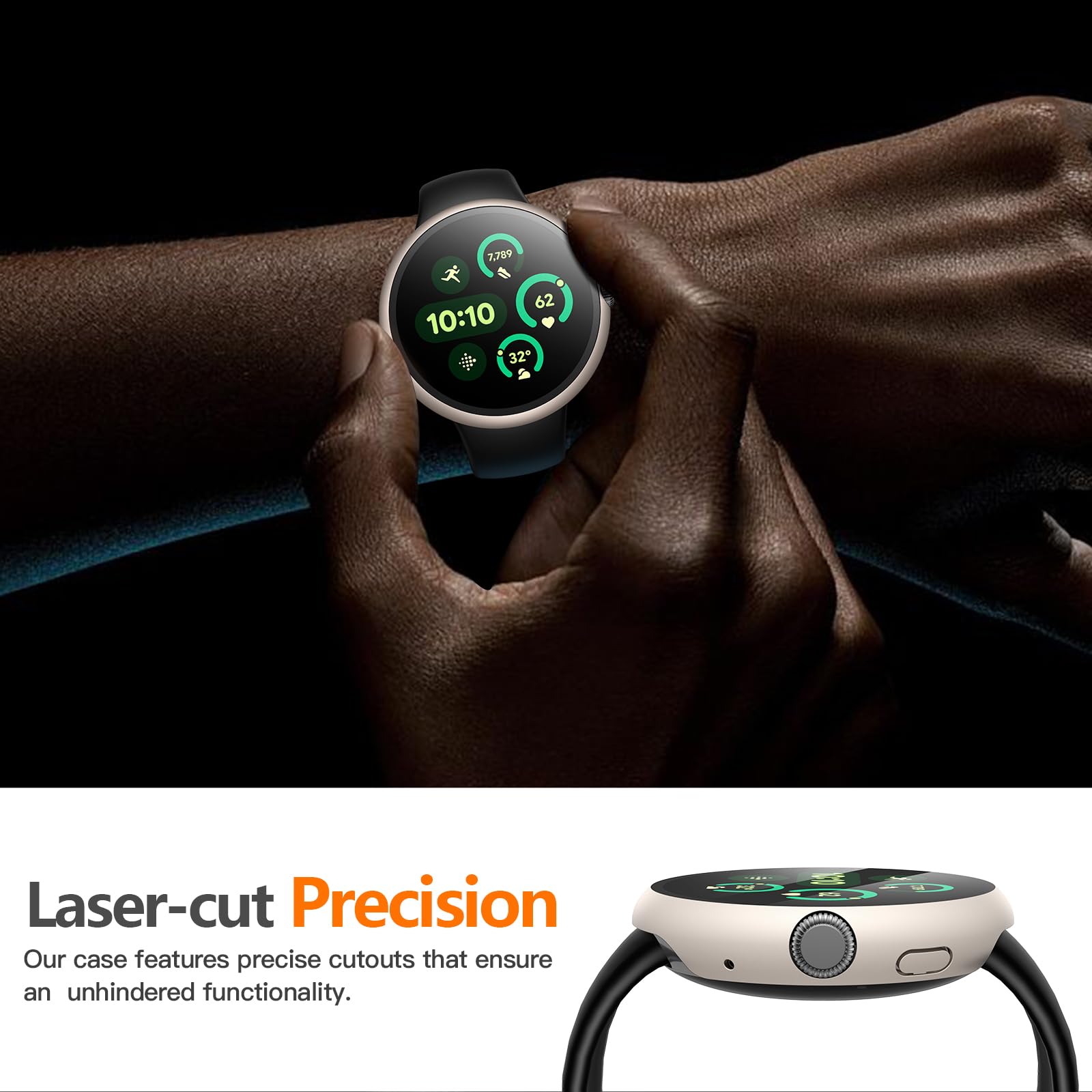 Full Protection: This comprehensive case combines a high quality hard PC frame with an ultra-thin tempered glass screen protector in a robust 2-in-1 design without adding any extra bulk or weight. It offers complete protection for your Google watch’s screen and curved edges, guarding against dust and fingerprints