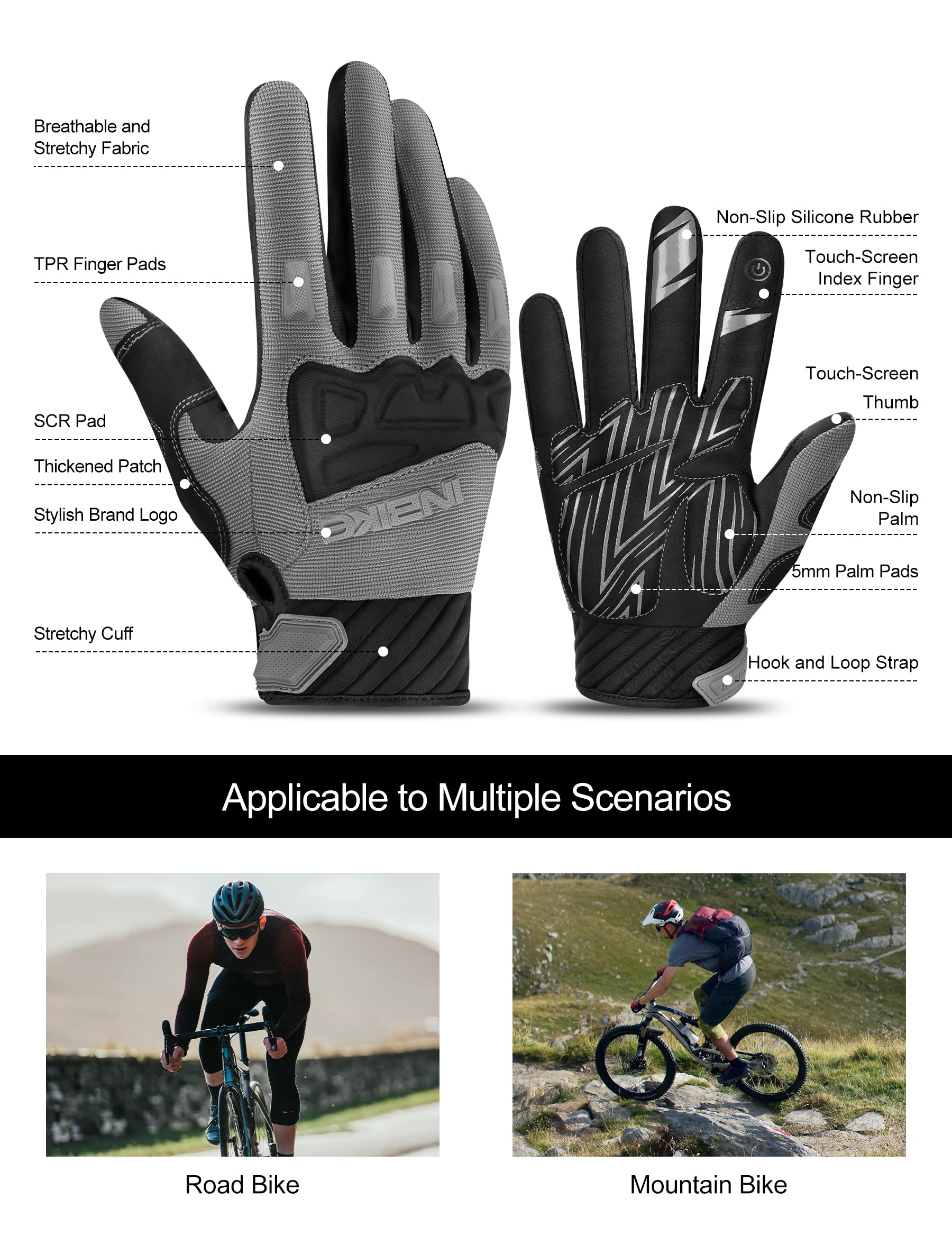 [Wear-resistant/Non-slip/Shock-resistant]: The 5MM palm pads will effectively absorb shock, reduce pain and numbness, and non-slip silicone strips on it, make riding easier.