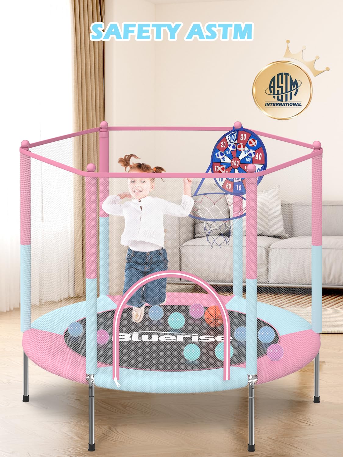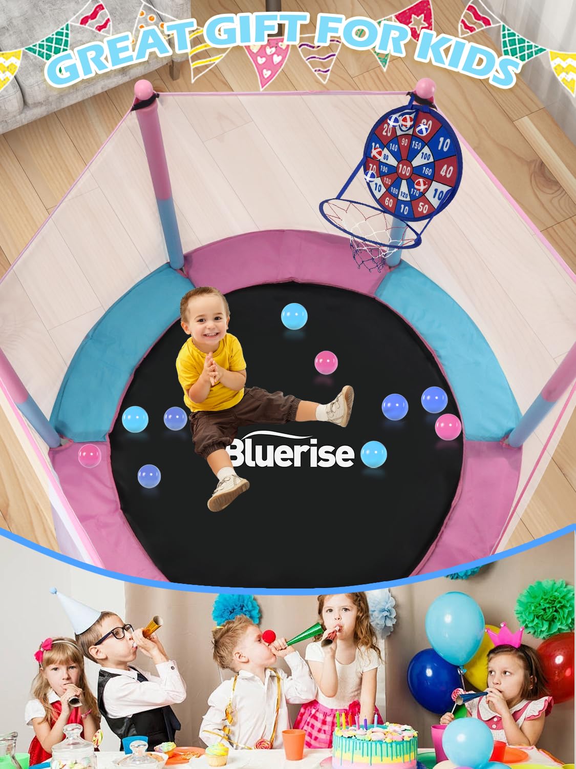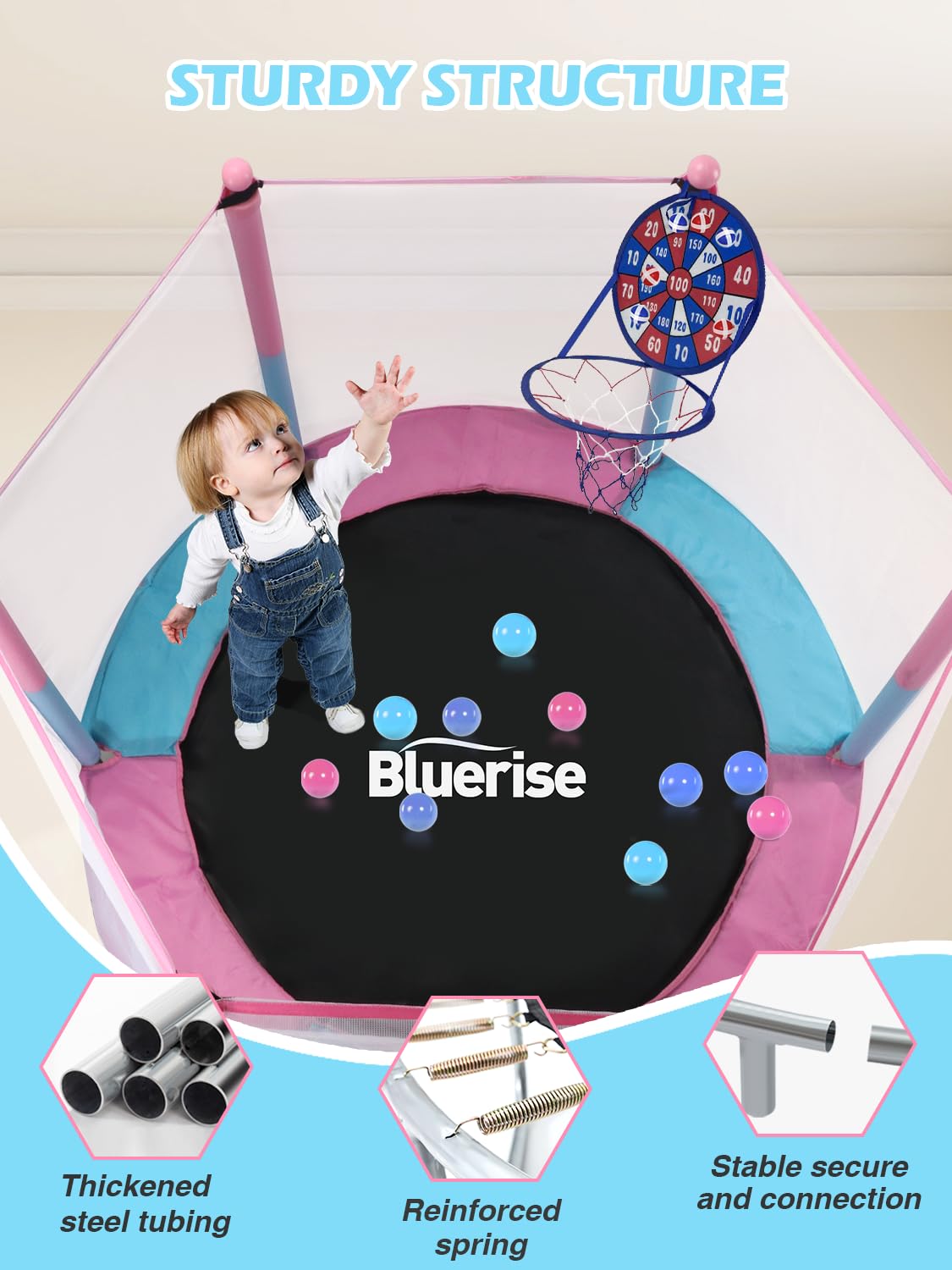 【Perfect Gift】The newly upgraded trampoline is an ideal Christmas gift for your toddlers. BLUERISE 55IN trampoline with basketball hoop provides great fun and jumping exercise.