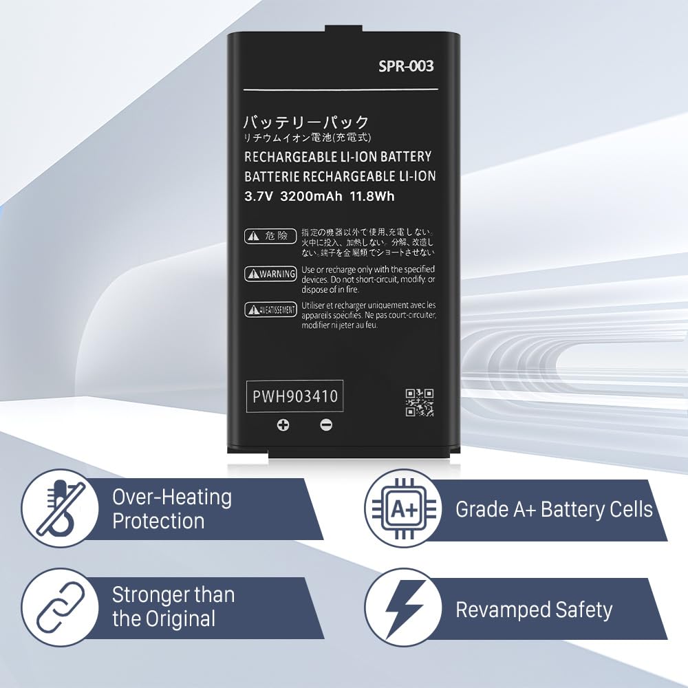 🎮【High Quality Battery】This Upgraded SPR-003 Battery uses Grade A+ rated battery cells with ILAC ISO 17025 and UL 2054 certification. Our battery will provide you over 800 charging cycles with high-speed and efficient charging. Keep your Gaming Console a day of vitality.
